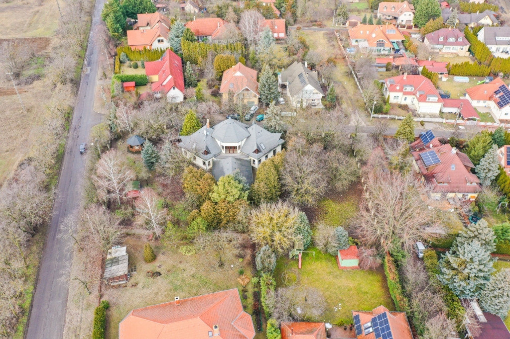 A közel 400 m²-es lakóépület egy impozáns, 2.588 m²-es, parkosított telken helyezkedik el, amely tökéletes intimitást és életteret biztosít tulajdonosai számára.