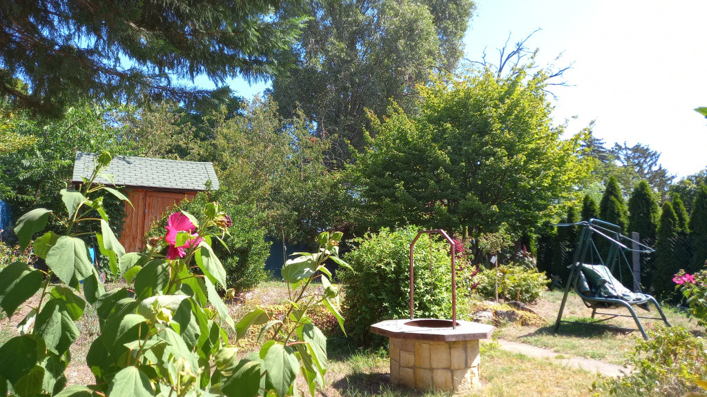 A ház 438 nm-es rendezett, kiváló fekvésű telken helyezkedik el. A telken belül fúrt kút, szerszámos házikó, autóbeálló is helyet kapott. A kertet csodaszép növényvilág ékesíti, gondosan ügyelve arra, hogy örökzöldekben gyönyörködhessen egész télen is.