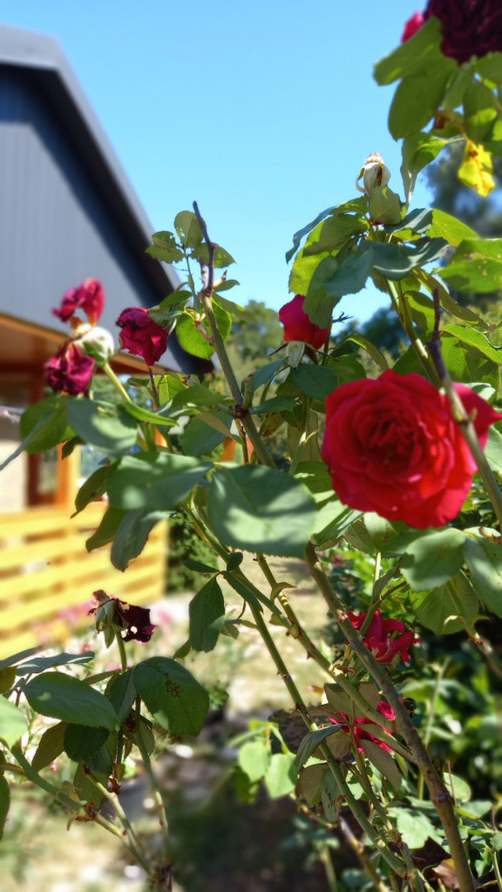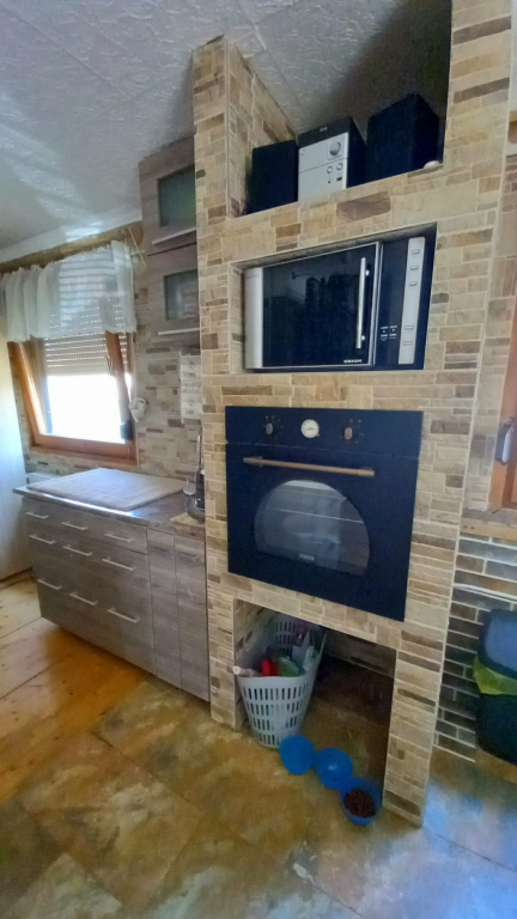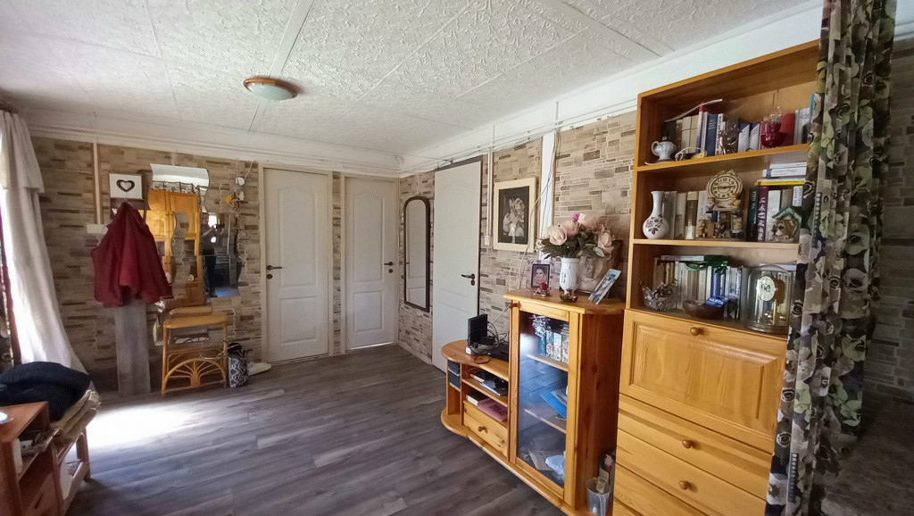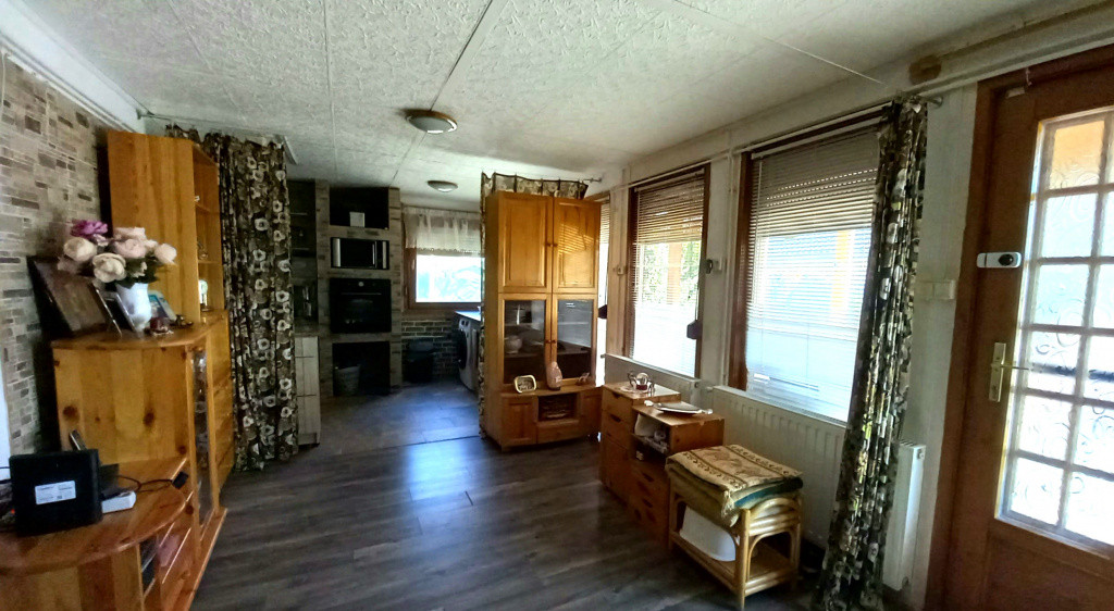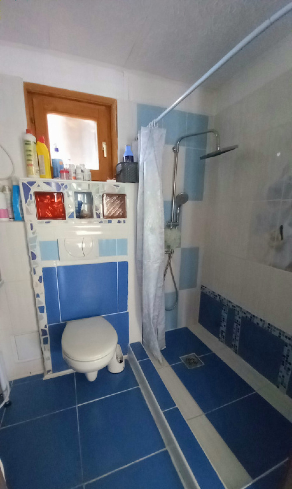 Az épület földszintes, részben FELÚJÍTOTT könnyűszerkezetes, 45 nm-es (+14 nm fedett terasz), 3 szobás, étkezőkonyhás, kamrás. D-Ny fekvésének, hatalmas ablakainak köszönhetően a terek világosak, és az egész csodaszép kertre rálátni.