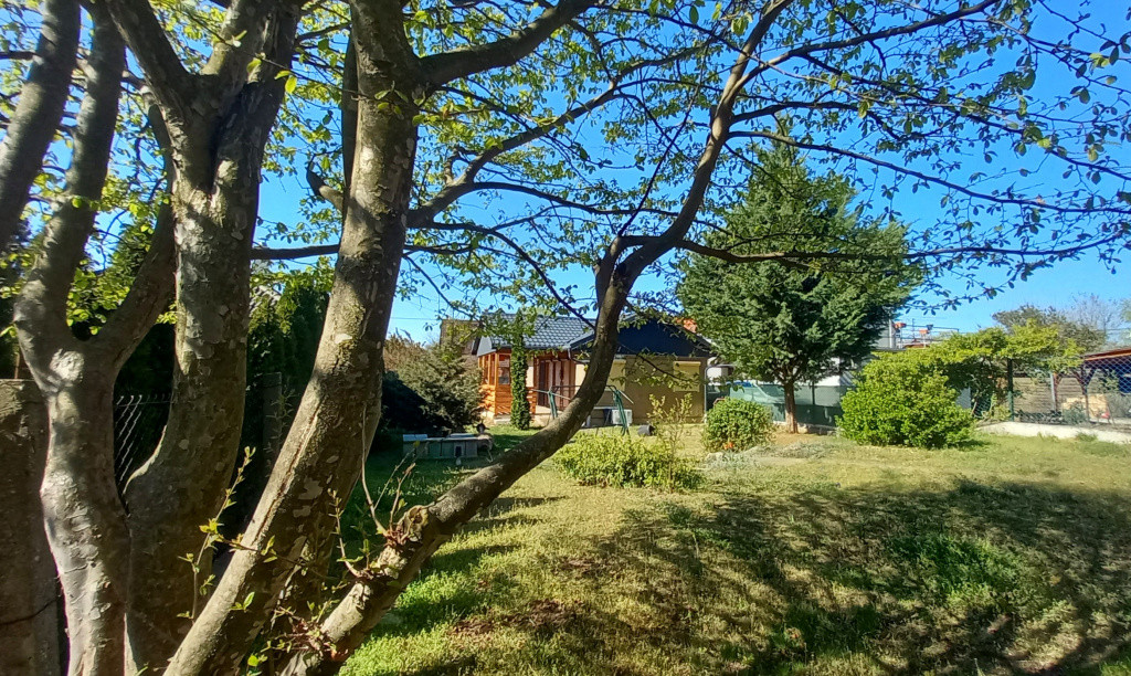 A ház 438 nm-es rendezett, kiváló fekvésű telken helyezkedik el. A telken belül fúrt kút, szerszámos házikó, autóbeálló is helyet kapott. A kertet csodaszép növényvilág ékesíti, gondosan ügyelve arra, hogy örökzöldekben gyönyörködhessen egész télen is.