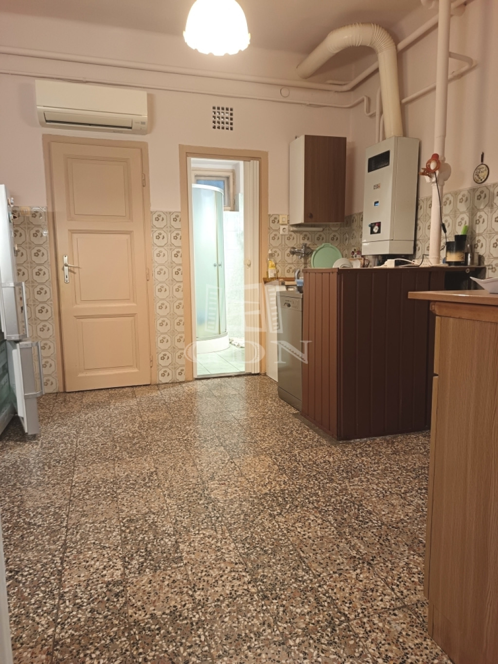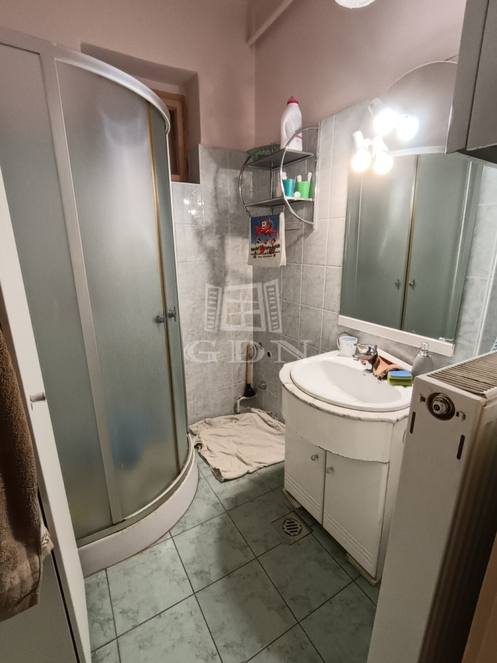 A konyhából nyílik a fürdőszoba, és a spájz. Jelenleg a fürdőszoba egy zuhanyzós, kis méretű, felújított helyiség, azonban, aki átalakításban gondolkozik, figyelmébe ajánlom, hogy egybenyitható a spájzzal, így növelve annak területét.