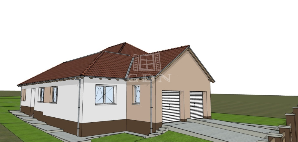 Jelen ikerház fél nettó 114 nm hasznos alapterületű egy szintes épület + 20 nm-es fedett garázs, valamint 19 nm-es terasz.