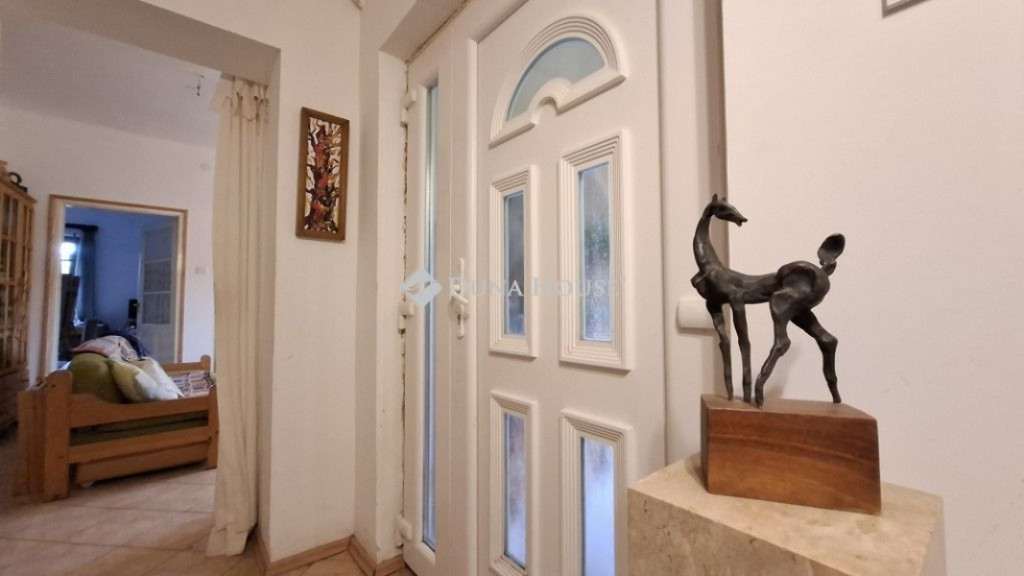 Nyílászárók: barna fa új többrétegű szigetelésű ablakok, fehér műanyag új bejárati ajtó és az előszobában új szigetelt fehér műanyag ablak