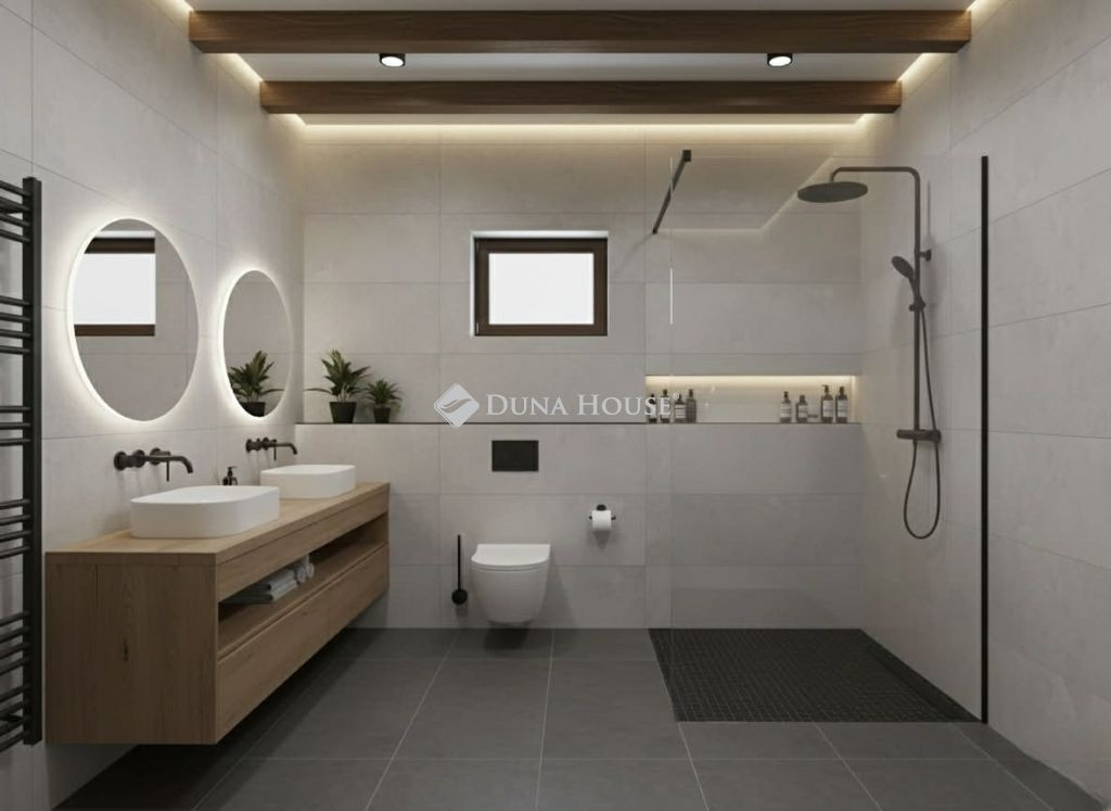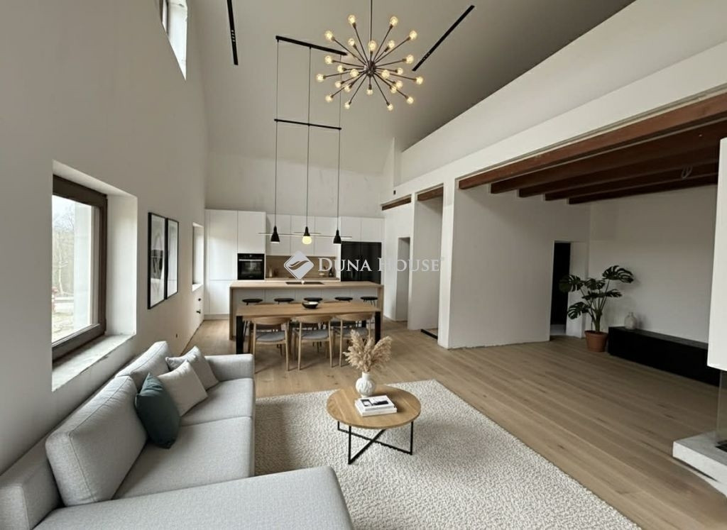 Álomotthon a Vértes lábánál: Modern Luxus és Természetes Elegancia VértesacsánEladásra kínálunk egy minden igényt kielégítő, új építésű luxus családi házat a festői Vértesacsán.Ez az ingatlan nem csupán egy ház, hanem egy életérzés: ahol a modern technológia kényelme találkozik a vörösfenyő nemes illatával és a hatalmas terek szabadságával.Páratlan ElhelyezkedésVértesacsa a nyugalom szigete, mégis karnyújtásnyira a nagyvárosoktól:Székesfehérvár: mindössze 20-25 perc.Budapest: az M1-es autópályán keresztül kb. 40-45perc alatt elérhető.Látványosságok a közelben:A Vértes hegység túraútvonalai, az Alcsúti Arborétum, a felcsúti Pancho Aréna és az etyeki borvidék mind percek alatt elérhetőek.Építészeti Bravúr és DesignAz ingatlan B30-as téglából épült, melyet 15 cm-es grafitos hőszigetelés véd, biztosítva az extra alacsony rezsiköltséget.A belső tér ékköve:Az amerikai konyhás nappali lenyűgöző, 7 méteres belmagassága katedrális szerű teret hoz létre, ahol a mennyezetet látszó vörösfenyő gerendák díszítik.Prémium anyagok:A talpunk alatt valódi vörösfenyő svédpadló fut végig, amely melegséget és tartósságot sugároz.Fény és technológia:A legmodernebb hőszigetelt nyílászárók gondoskodnak a természetes fényről, miközben a ház hőszivattyús rendszerrel, központi klímával és speciális levegőszűrő rendszerrel van felszerelve a maximális komfortért.Átgondolt Elrendezés (Tervrajz alapján)A bruttó 17,5 méter hosszú épület minden négyzetmétere a kényelmet szolgálja:Földszint:A közösségi élet és pihenés színtereHatalmas, világos amerikai konyhás nappali és étkező (37 m² + 13 m² terasz).3 különálló hálószoba a földszinten, saját fürdőszobával ideális vendégeknek vagy gyermekeknek.Vendég WC és háztartási helyiségek.Közvetlen házkapcsolatos garázs (30 m²) elektromos kapuval, ahonnan száraz lábbal léphetünk az otthonunkba.Emelet:Az intim szféra és a panorámaEgy hatalmas, elegáns galéria, amely rálátást biztosít a nappalira.2 további hálószoba és egy fürdőszoba.Exkluzív szülői háló, amelyhez privát fürdőszoba és gardrób rész tartozik.Miért válassza ezt a házat?Mert itt nem kell kompromisszumot kötnie. Megkapja a legmodernebb gépészetet (hőszivattyú, levegőszűrő), a természetes anyagok (vörösfenyő) luxusát és egy olyan térérzetet, amit csak a 7 méteres belmagasság adhat meg. Ez a ház azoknak készült, akik értékelik a minőséget, a csendet, de nem akarnak lemondani a város közelségéről.Tekintse meg személyesen, és szeressen bele a Vértes ölelésében fekvő modern rezidenciába!