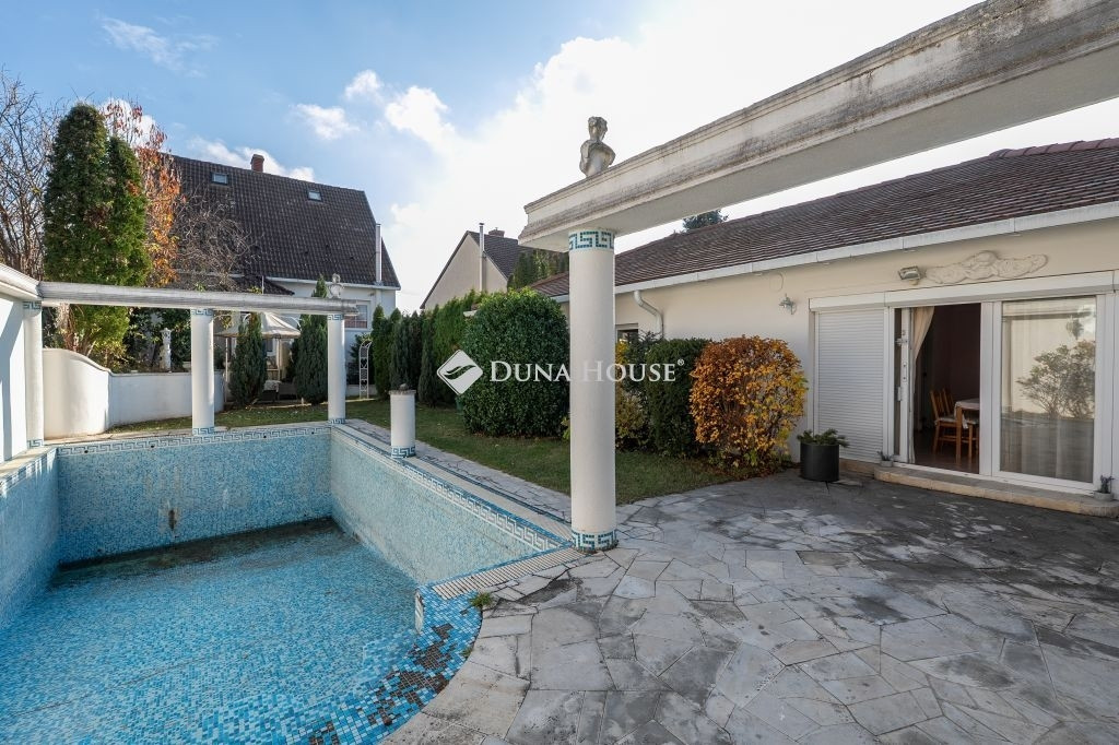 A telek gondozott, térkővel burkolt és parkosított, központi eleme pedig a lenyűgöző, 5×10 méteres, épített, fűthető medence, amely hosszú szezonban használható.