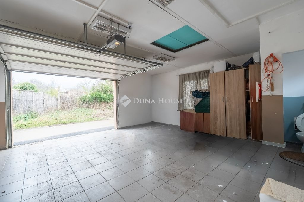 Kb. 30 m²-es garázs, modern elektromos kapuval, járólappal burkolva kényelmes autótárolás vagy hobbi-műhely céljára is alkalmas