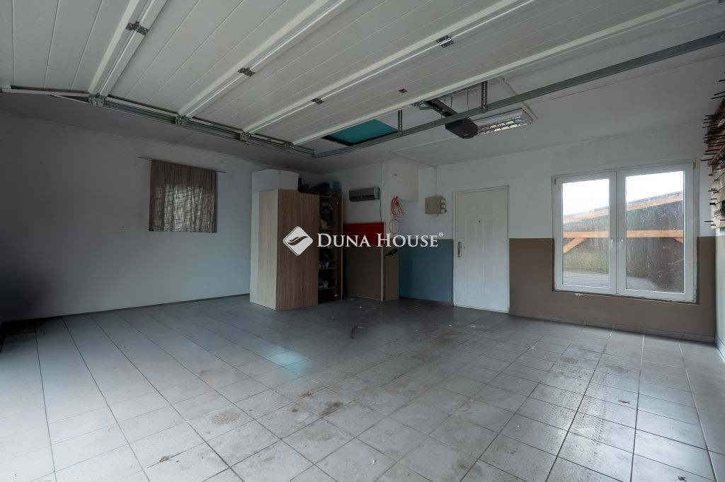 Kb. 30 m²-es garázs, modern elektromos kapuval, járólappal burkolva kényelmes autótárolás vagy hobbi-műhely céljára is alkalmas