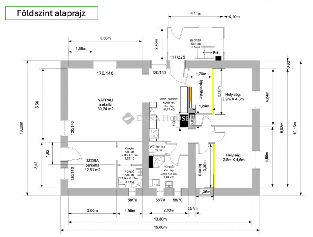 Földszint: 124,7 m² (ebből apartman: 19,2 m²)