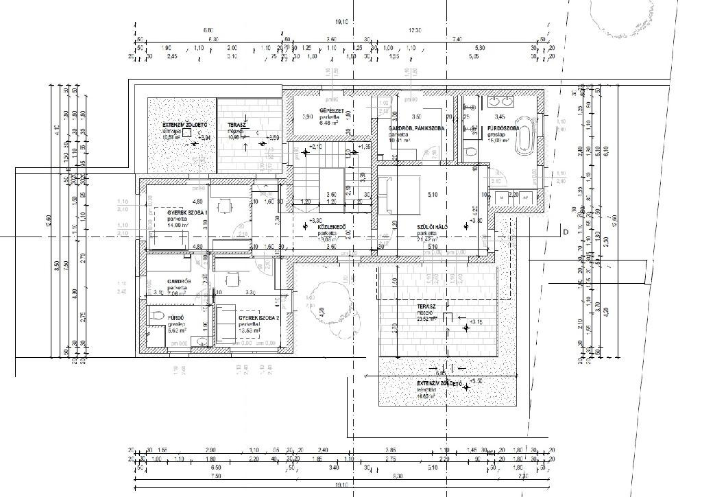 Az épület hasznos alapterülete: 297,65 m2 + 70 m2 terasz + 40 m2 garázs