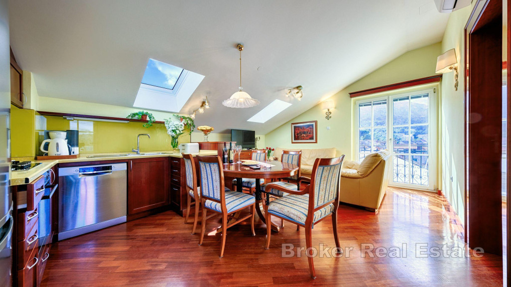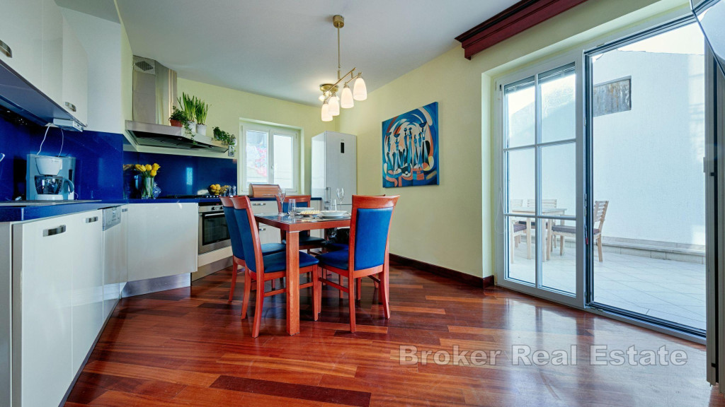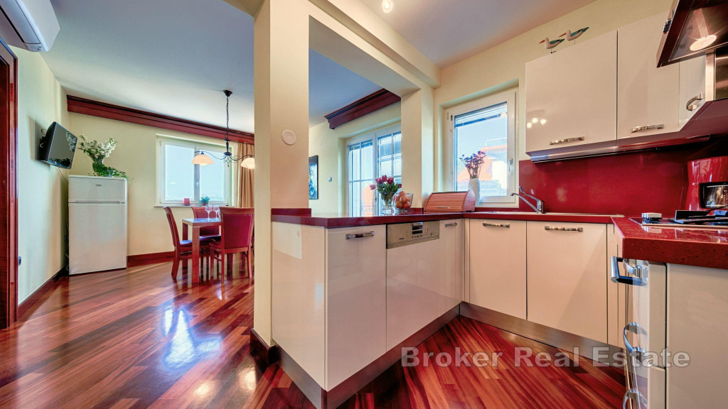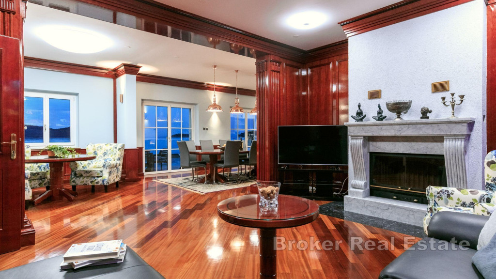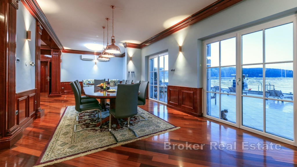 Impressive villa in the first row to the sea, located on Vis, one of the most beautiful Croatian islands. It is situated in a quiet location, away from the city center, and offers everything you need for a peaceful vacation. The villa is spread over 550 m2 of living space, with a total of 4 floors. An unforgettable view of the crystal sea is provided from each floor. The total surface of the terraces is 204 m2. According to the wish of the future owner, this villa can be used as a unique residential complex for a pleasant family vacation, or as four separate apartment units in the form of tourist rentals. Additional features of this property include a garage for one car, a berth for two boats, and a private beach access. The first apartment is spread over the ground floor and the first floor, with a total living space of 281 m2, and is also the largest in this property. It consists of four bedrooms, living room with living room, kitchen and dining room, three bathrooms and one toilet. From this apartment there is direct access to a fantastic terrace of 225 m2, equipped with a barbecue, deck chairs and a dining area. The second apartment is located on the second floor and covers a total of 42 m2 of living space. It consists of one bedroom, living room and one bathroom. The apartment also has a beautiful terrace of 29 m2. On this floor there is also the third apartment of 53 m2, with two bedrooms and a lovely terrace of 32 m2. On the attic is the fourth apartment, with a living space of 75 m2, two bedrooms and a terrace of 18 m2. The island of Vis is famous for its beauty, rich history, the purity of the sea as well as the peace it provides. This luxury Real Estate, featured as a rarity on the market, offers everything you need to enjoy a unique and unforgettable location. BROKER REFERENCE ID:2011/81