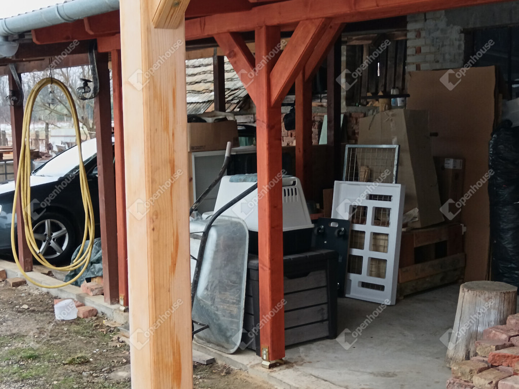 Az udvarban két egymástól külön elhelyezésben lévő gépkocsi beálló is van.