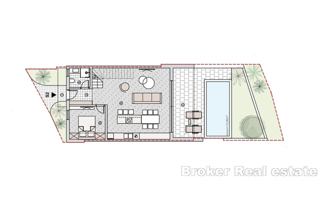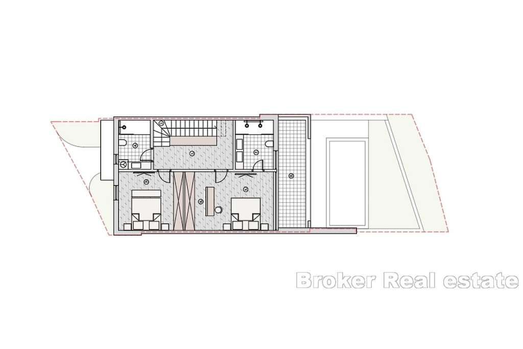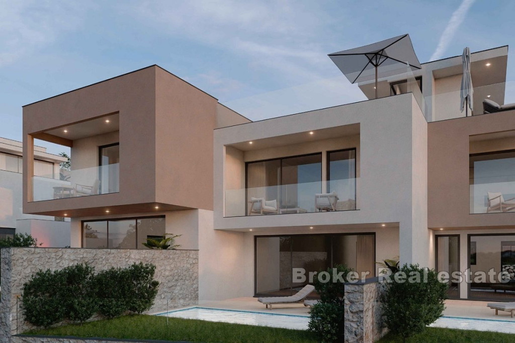 A new complex of houses with a swimming pool, garden and parking is for sale. The houses are located on a plot of 700 m2, which, due to its position, offers an open view of the sea. Each house is spread over two floors of living space, both of which have a roof terrace with a jacuzzi. The houses consist of three bedrooms and three bathrooms, kitchen, dining room and living room with access to the sun deck and pool. Each house has at least one outdoor parking space, while each offers an open sea view. The location is great for holiday use, but also for everyday life due to the access and distance from the sea, the city center and all essential amenities. BROKER REFERENCE ID:2043/130