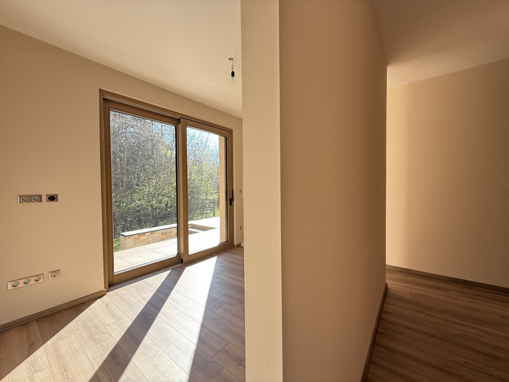 Az intim, 30 m2-es teraszról lenyűgöző panoráma nyílik az erdőre, tökéletes helyszínt biztosítva a pihenésre és a baráti összejövetelekre.