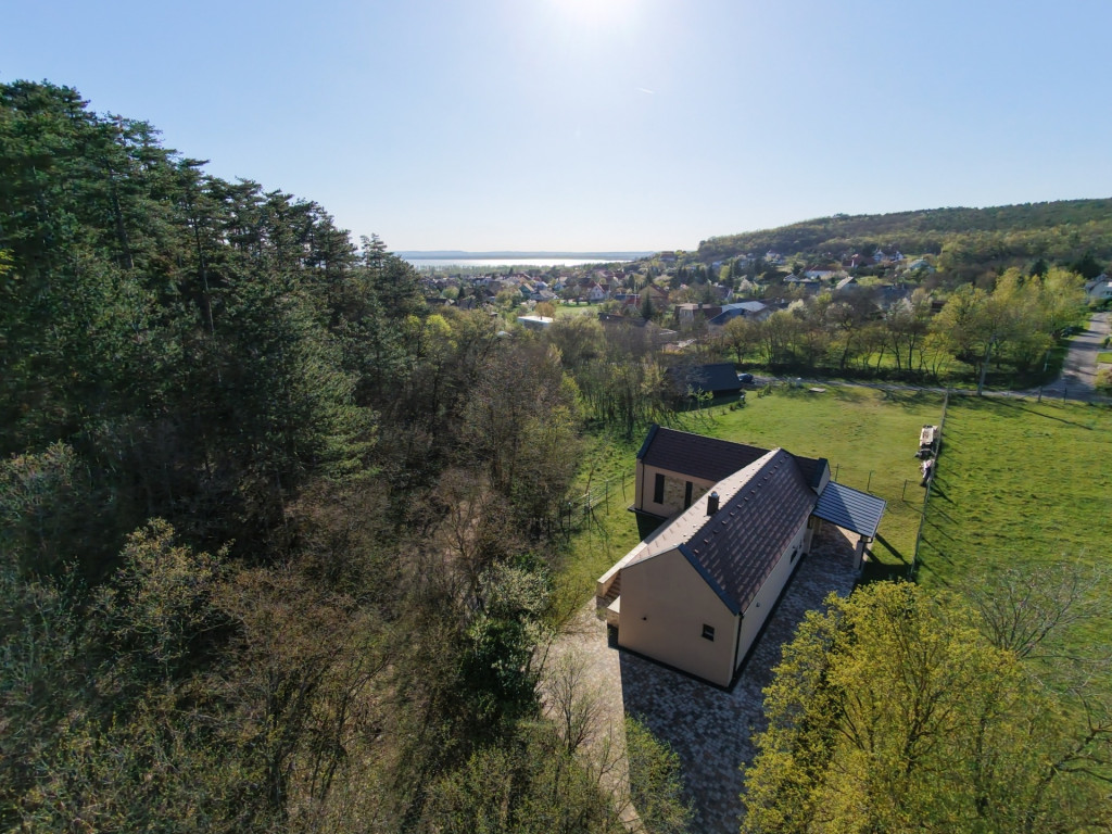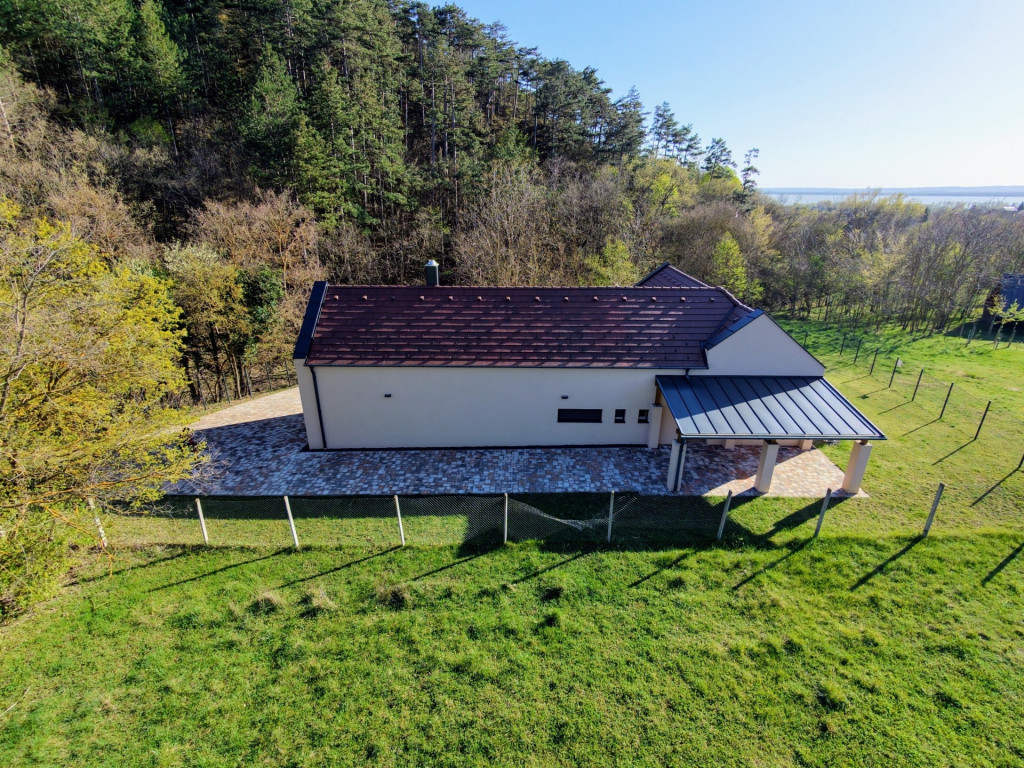 Eladó Vonyarcvashegy közkedvelt részén, új építésű ingatlanok szomszédságában egy 2025-ben épített, nettó 120 nm-es, egyszintes családi ház, közel 800 nm-es telken, körbe ölelve a természettel.
