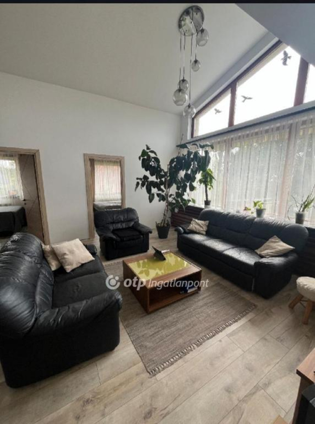A nagyobbik lakásban ami kb 170-nm és részben felújított található 5 szoba nappalival és konyhával felszerelve,3 fürdőszoba és wc,kamra,kazánház,garázs illetve fedett kocsibeálló is van,mindkettő két gépjárműnek biztosít parkolási lehetőséget. A garázsban szerelőakna és három fázisú ipari áram is megtalálható.