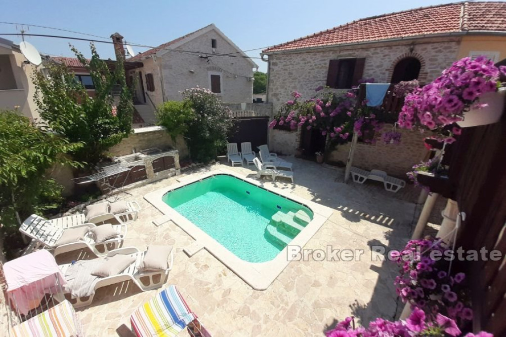 Two renovated stone houses for sale, located in the southern part of town Zadar, near the sea and the beach. Both houses are completely renovated and equipped (except for one room that is not finished inside) and consist of: 1st house – a total of 6 studio apartments (with bathrooms), one of which is not finished inside 2nd house – two bedroom apartment on the first floor and a spacious tavern on the ground floor. In the closed yard there is a shared pool while the whole property is fenced and provides excellent privacy for users. High quality property for tourist rental business with good business numbers and full capacity throughout the year (in winter the apartments are rented to students). The property has access from two streets, is about 200 meters from the sea and free public parking is available nearby. BROKER REFERENCE ID:2016/467