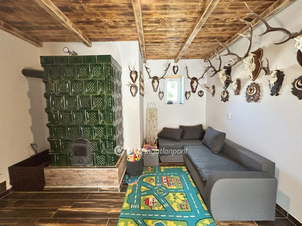 Csendes zsákfalu, nyugalom és vidéki élet várja új tulajdonosát ebben a felújított házban. A két nagy szoba hajópadlóval és gerendás mennyezettel készült, a többi helyiség kerámialappal burkolt, miközben a gerendás mennyezet végig kíséri az egész házat, hangulatos és karakteres tereket teremtve.