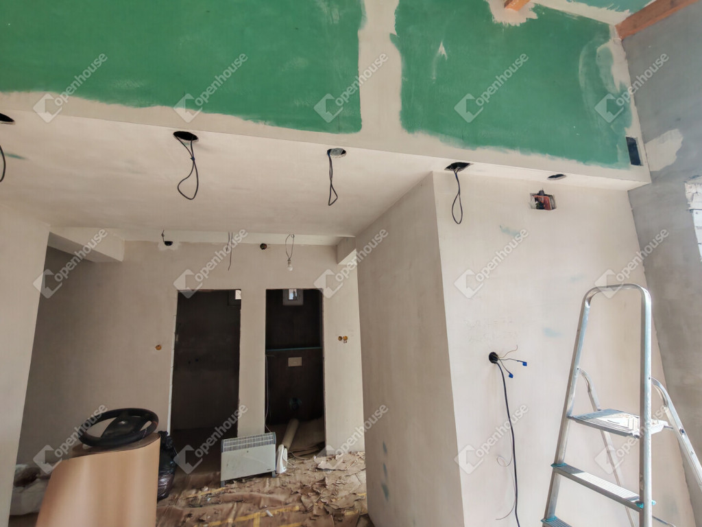 A tulajdonos minden szükséges anyagot megvásárolt (nyílászárók, burkolatok, taposók), amelyek a vételár részét képezik.