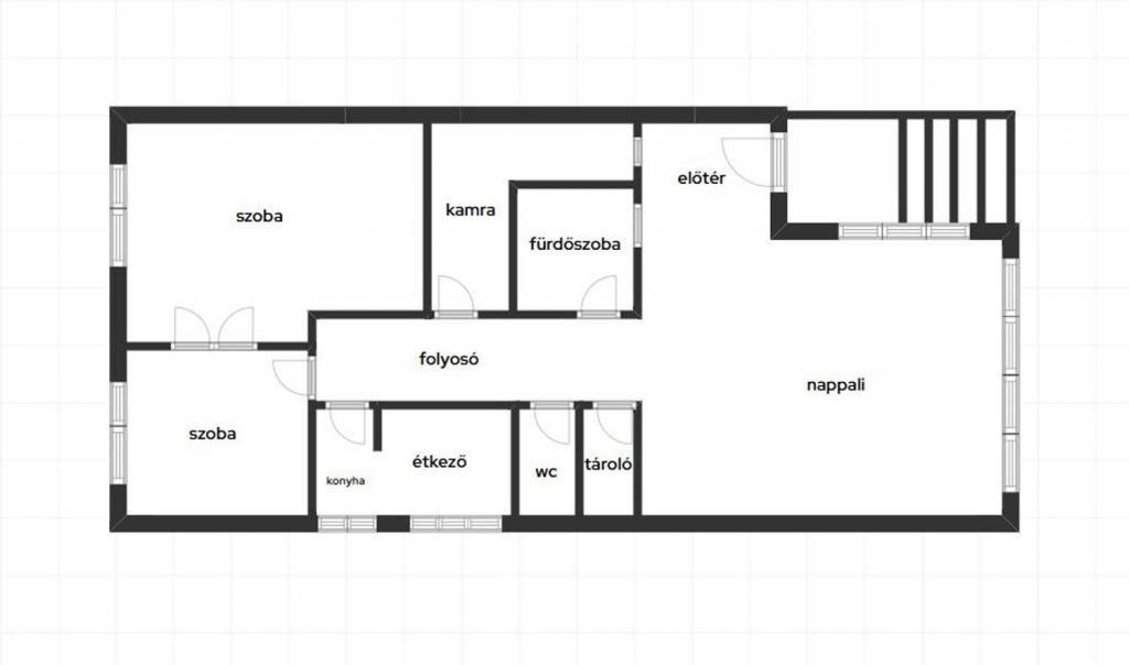 Az ingatlan jelenleg 3 szobás, belső elrendezése logikus, a terek jól variálhatók, így ideális alapot nyújt saját igények szerinti felújításhoz vagy akár funkcióváltáshoz is.