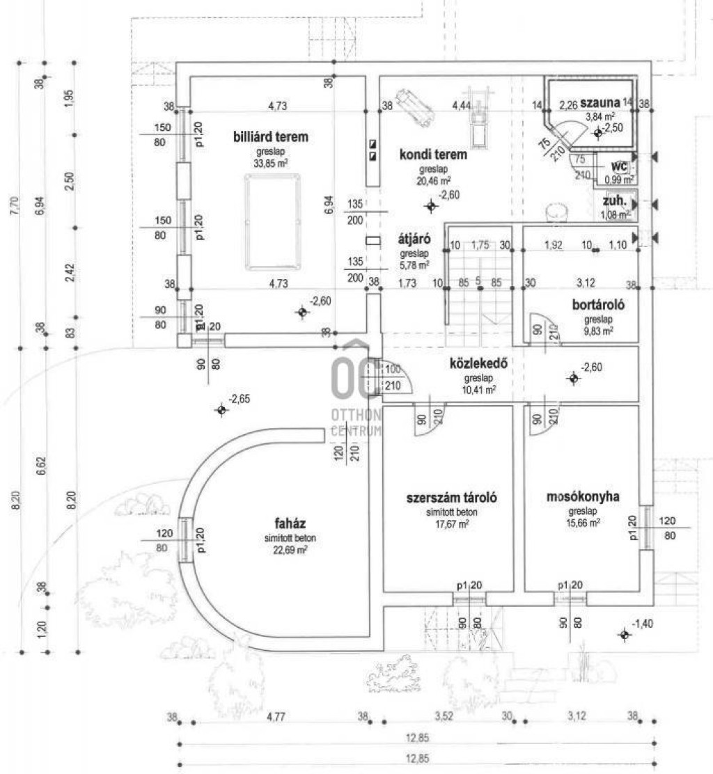 Itt található egy biliárd szalon, szauna, bor tároló, kondi terem, vizes blokk, mosókonyha és egyéb tárolók.