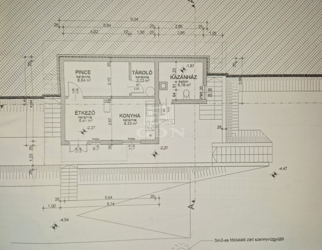 - külső 15 cm-es SZIGETELÉSSEL, vasbeton födémmel rendelkezik, tetejének fedése cserép, mely szintén szigetelt és fóliával ellátott.