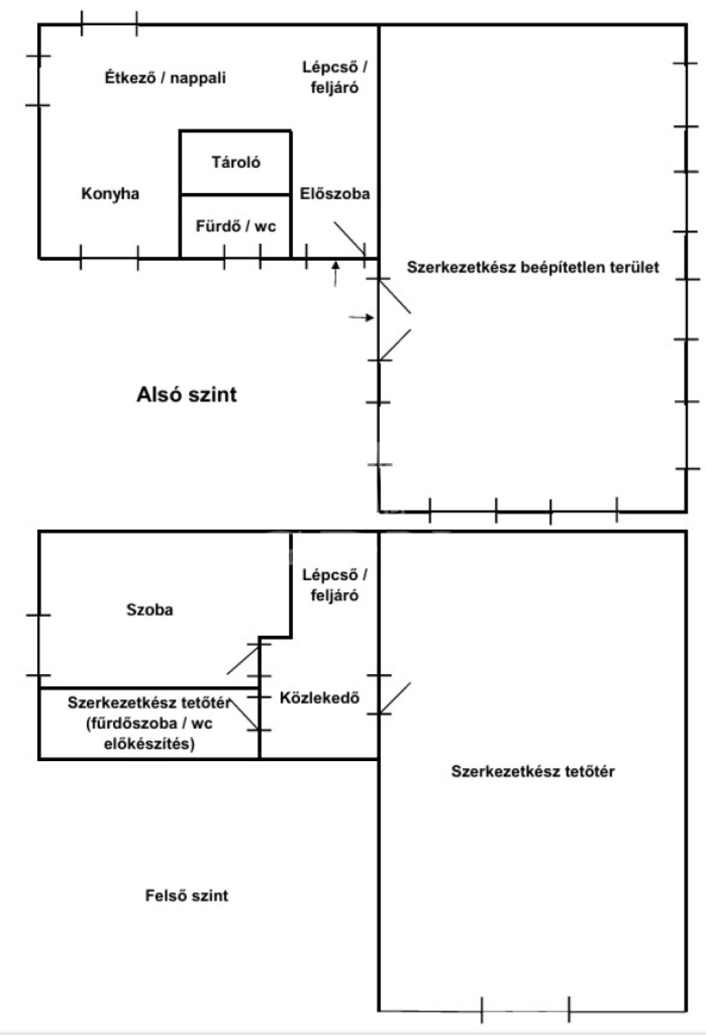 Egy további, kb. 53 m²-es szerkezetkész tetőtér is rendelkezésre áll, amelyben akár további lakóterek is kialakíthatók.