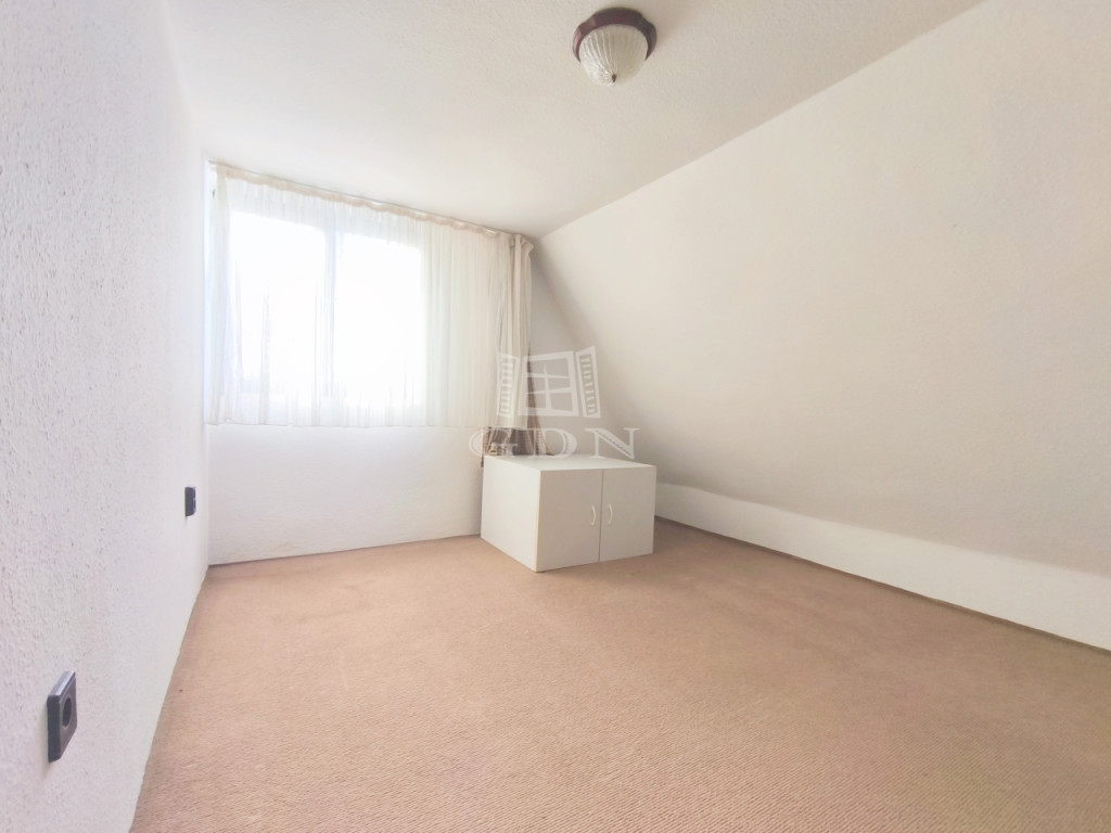 Az emeleten egy padlószőnyeges szoba kapott helyet méretre készített beépített szekrénnyel, valamint egy szerkezetkész helyiség, amely fürdőszoba kialakítására előkészítve várja az új tulajdonosát.