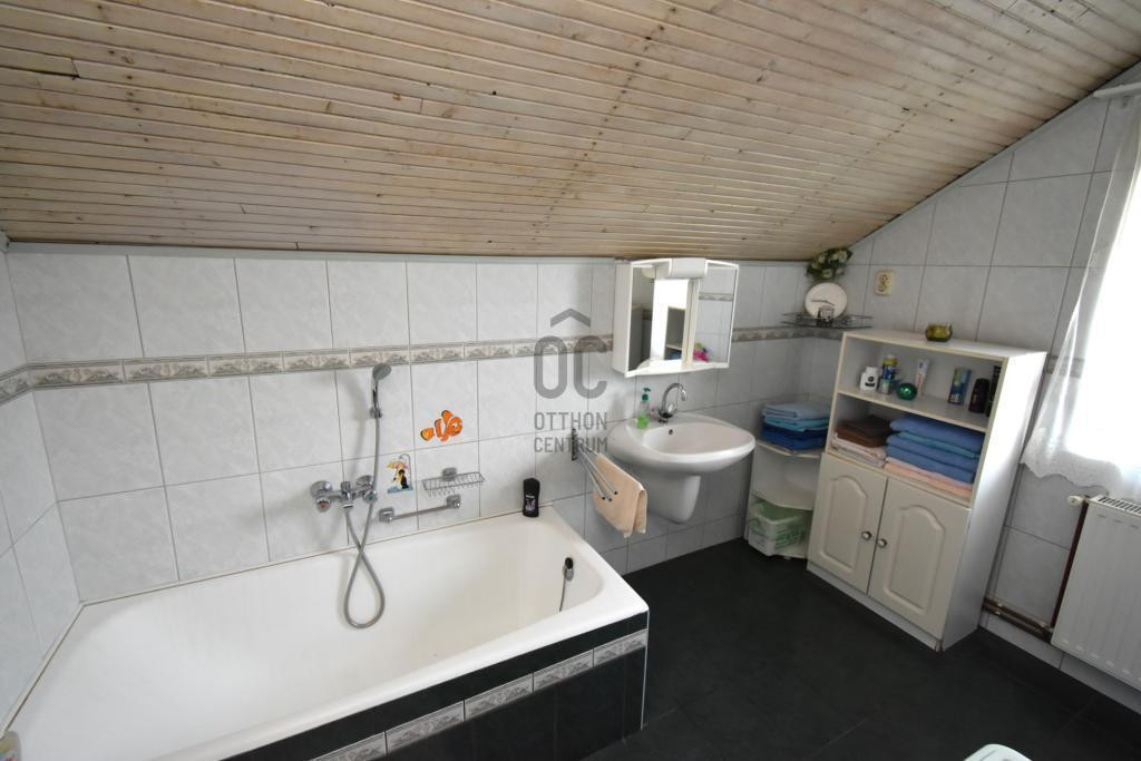 A ház két fürdőszobával büszkélkedhet, amelyek kényelmet és praktikus megoldásokat kínálnak a mindennapok során.