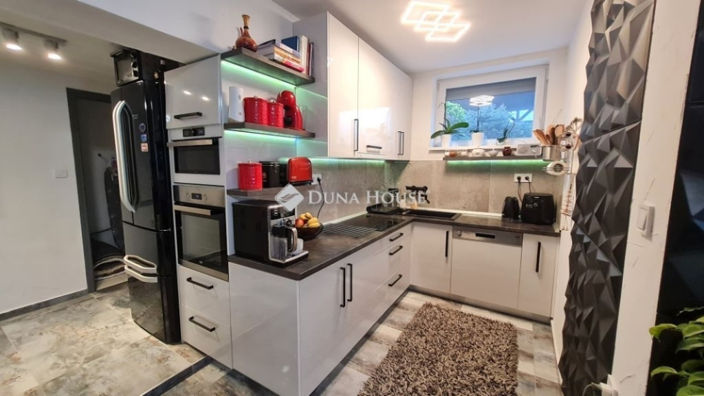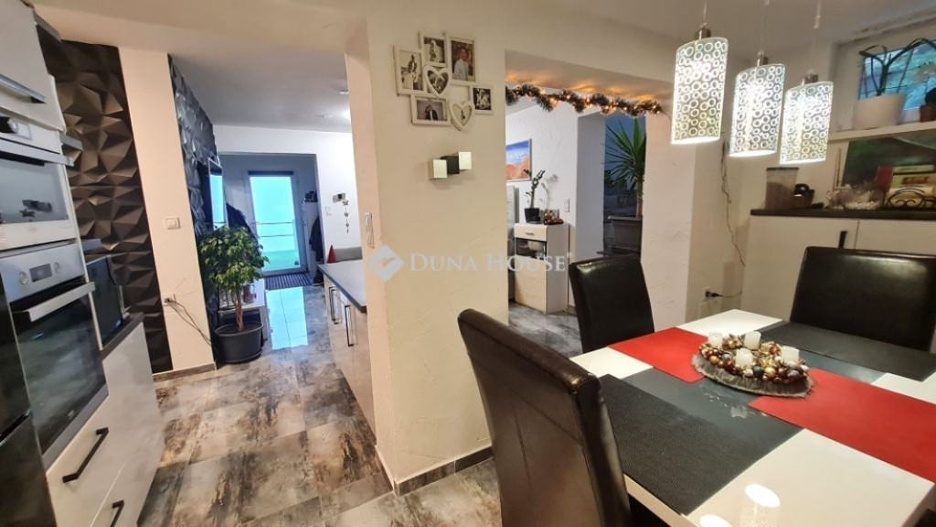 PANORÁMÁS, MODERN CSALÁDI HÁZ ELADÓ ZALAEGERSZEGEN A GÓGÁNHEGYEN PRÉMIUM KIVITELBENZalaegerszeg csendes, panorámás részén kínálunk megvételre egy 2022-ben épült, 104 m²-es kétszintes családi házat.A keletnyugati tájolású ingatlan aszfaltozott úton könnyen megközelíthető. A 1405 m²-es telek felső részén gondosan karbantartott, parkosított kert található fenyőkkel, díszbokrokkal és számos értékes dísznövénnyel, amely nyugodt, intim környezetet biztosít.A telek alsó része jelenleg szabad terület, gyümölcsfák ültetéséhez ideális terep. A ház utcafronti része kerítéssel ellátott, míg az alsó terület még nincs bekerítve.A ház kialakítása:- két külön bejáratú lakrész, amely minimális ráfordítással akár egymástól függetlenül is tud funkcionálni.- jelenleg a ház egy nappali + három szoba elrendezéssel van napi használatban, de két nappali + két szoba elrendezéssel is használható.Főbb jellemzők: 3×25 A ipari áram, H-tarifás rendszer Az épület korszerű hőszigeteléssel ellátott, amely hozzájárul az energiahatékony, gazdaságos fenntartáshoz. Elektromos fali panel minden heyliségben + 3 db hűtő-fűtő klíma Kandalló a meghitt hangulatért Minden szobában TV-kiállás Gépesített konyha LED-világítás az egész ingatlanban Kamerarendszer Műanyag nyílászárók redőnnyel, szúnyoghálóval Külső árnyékoló a teraszonKényelmi extrák: 40 m²-es panorámás, részben fedett terasz 7 m²-es erkély a felső szinten Igényesen kialakított belső lépcsőház a két szint között Két fürdőszoba:o egyikben kád és zuhany +WCo másikban zuhanyzó WC-vel Külső tároló Épített bográcsozóParkolás: Elektromos kapuval ellátott fedett beálló 1 autó számára A ház előtt további 3 autó parkolására kialakított helyEz az ingatlan nemcsak egy ház, hanem élettér, ahol a modern műszaki tartalom, a természet közelsége és a panoráma valódi otthonélményt nyújt. Ne hagyja ki ezt a kivételes lehetőséget tekintse meg személyesen!