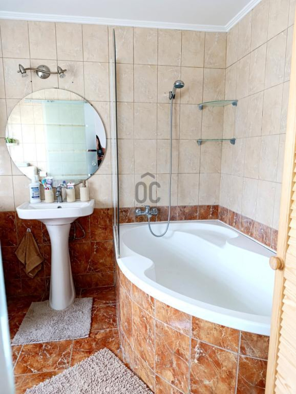 Felső szinten: 2 hálószoba, tágas fürdő+WC, nappali panorámás erkéllyel