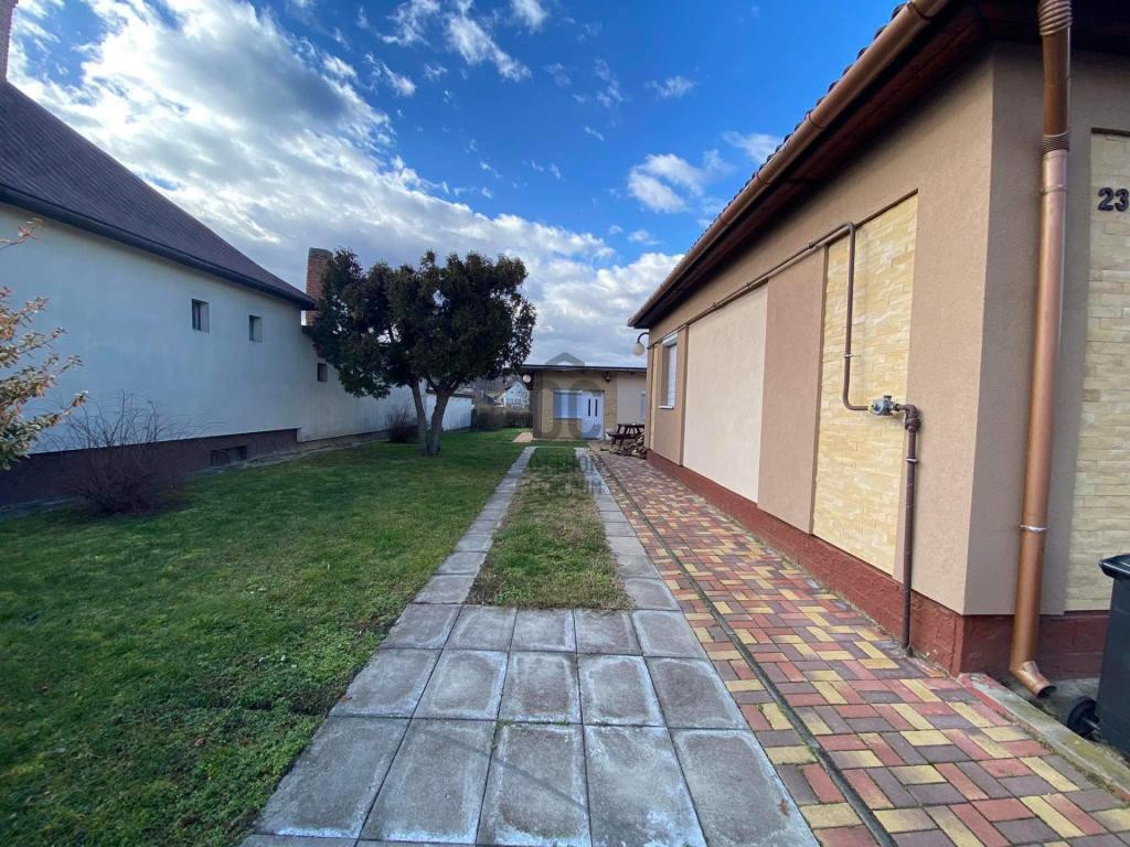 A földszintes kialakítású ház 3 kisebb és 1 nagyobb külön bejáratú lakrésszel-apartmannal rendelkezik, ezáltal befektetésre, /kiadásra, munkásszállónak/ vagy vállalkozásra is alkalmas, valamint többgeneráció együttélését is lehetővé teszi. A 3 kisebb apartmanhoz különálló közös konyha és mosókonyha tartozik, ebben az épületben található a tároló-kazánház, innen nyílik a 9 m2-es pince.