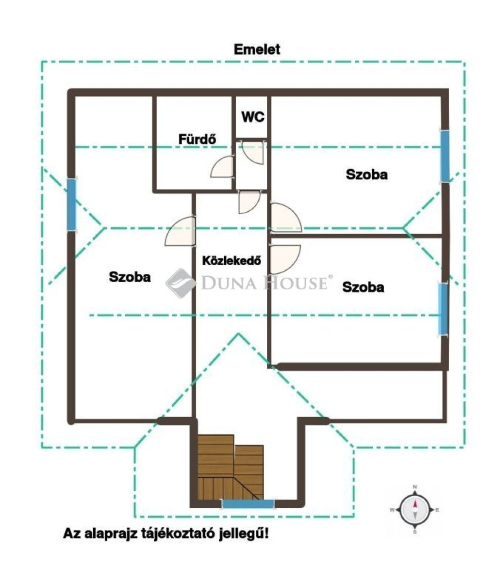 tetőtér: 3 szoba, zuhanyzós fürdő, külön WC
