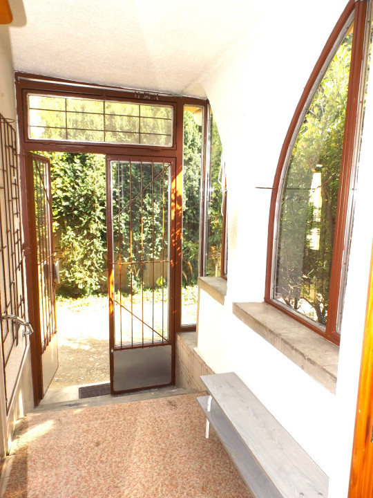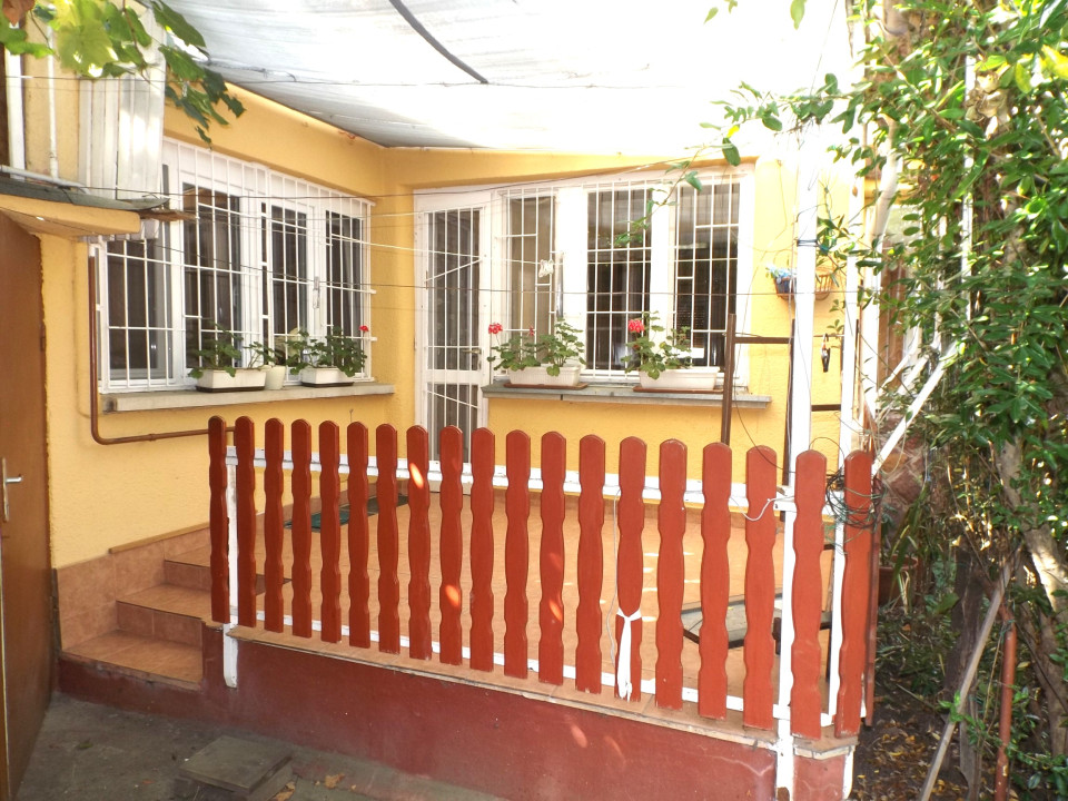 Az udvar felé néző, fedett kis terasz a szőlőlugas árnyékában igazán meghitt pihenőhely, ahol a városi nyüzsgés ellenére nyugalom várja az itt lakókat.