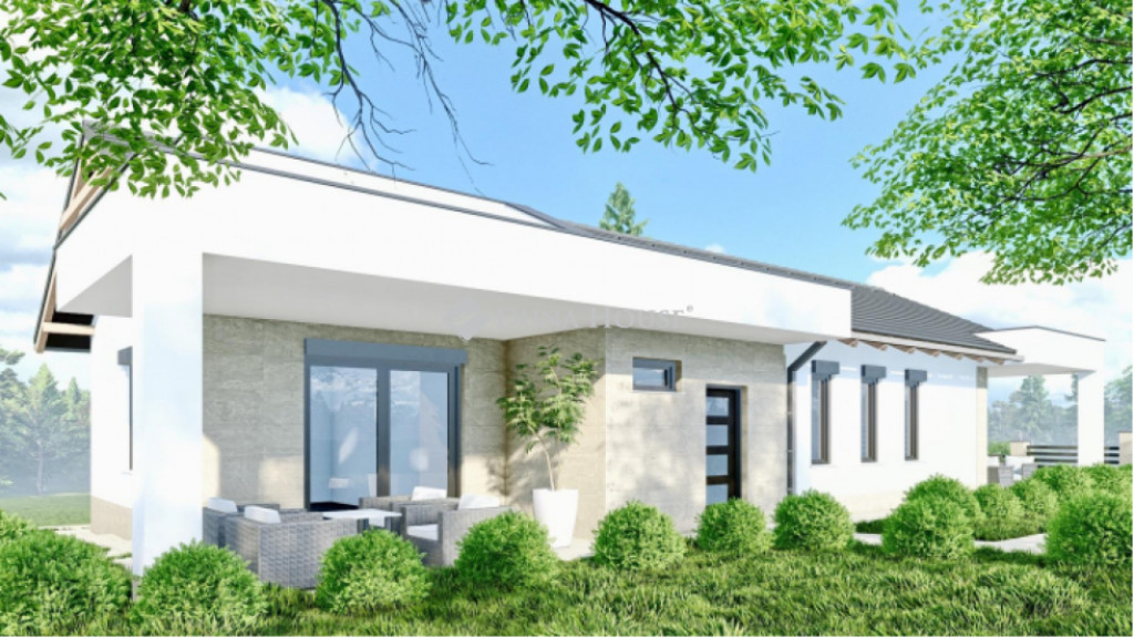 A ház 30 cm-es YTONG főfalakkal épül, kiváló hő- és vízszigeteléssel. A födémen 30 cm vastag, magas minőségű hőszigetelés, a homlokzaton 10 cm-es hőszigetelő rendszer biztosítja az alacsony energiafelhasználást és a kellemes belső klímát.