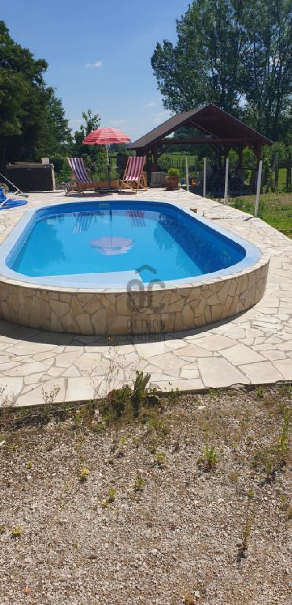 - A kertben az úszómedence 6x3 méteres, 1,2 méter mély, víz forgatással, éjszakai világítással.
