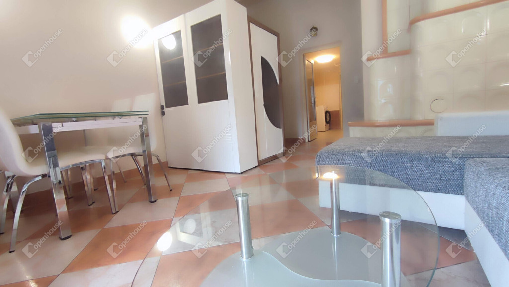 A tetőtéri lakrész saját bejáratú, nappalival, konyhával, sarokkádas fürdővel és bájos padlástérrel, amely ideális gyerekszobának vagy játszósaroknak.