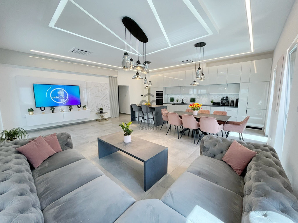 Prémium mennyezeti lámpák, led panelek, kiegészítő dizájn bútorok, képek és egyedi bútor betétek kerültek még elhelyezésre.