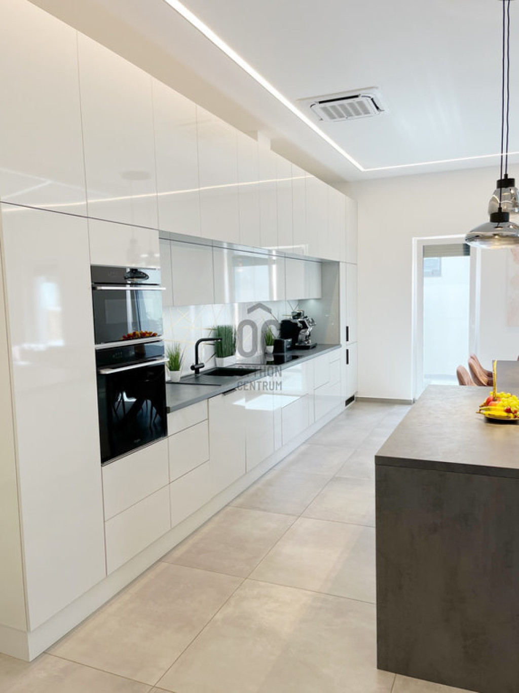 A konyhában beépített Whirlpool okos eszközökkel ( sütő, mikrohullámú sütő, indukciós főzőlap, páraelszívó, mosogatógép, hűtőszekrény és fagyasztó). Blancó mosogatócsap és szemetes. Valamint EVIDO ivóvíz tisztító rendszer, dupla karos csapteleppel.