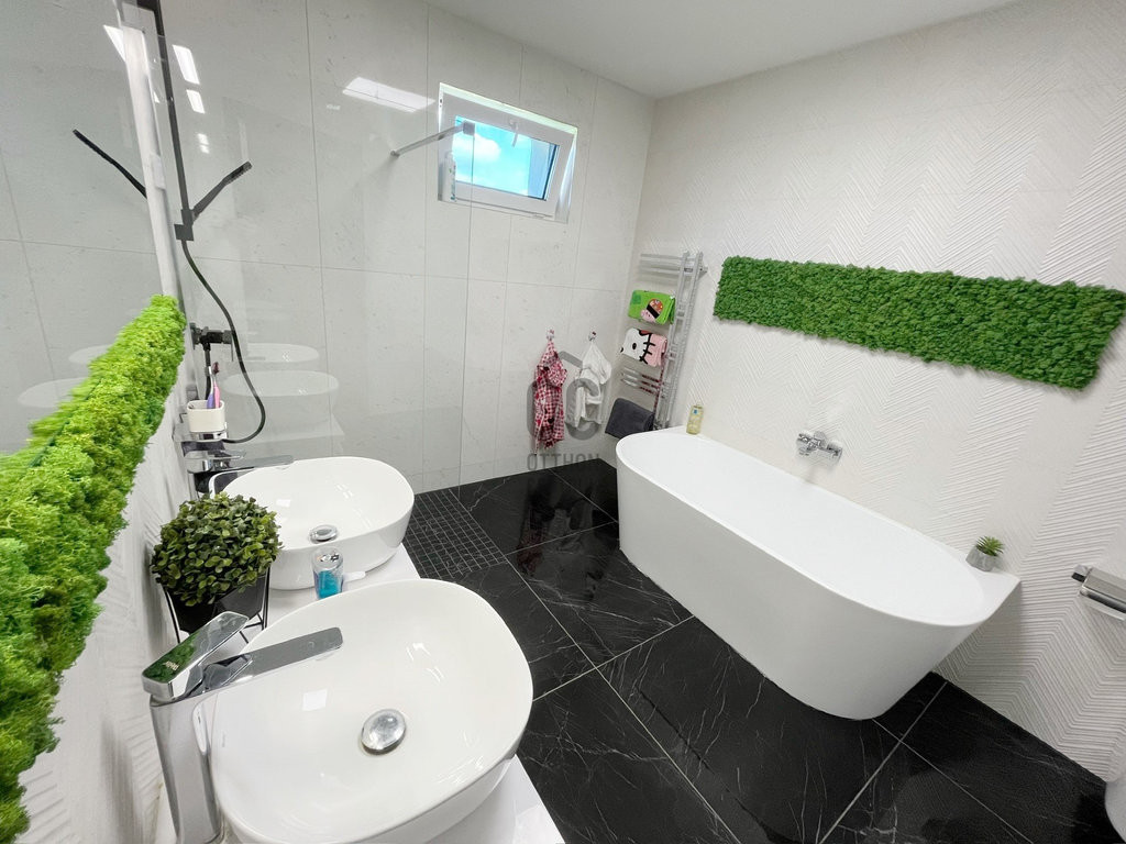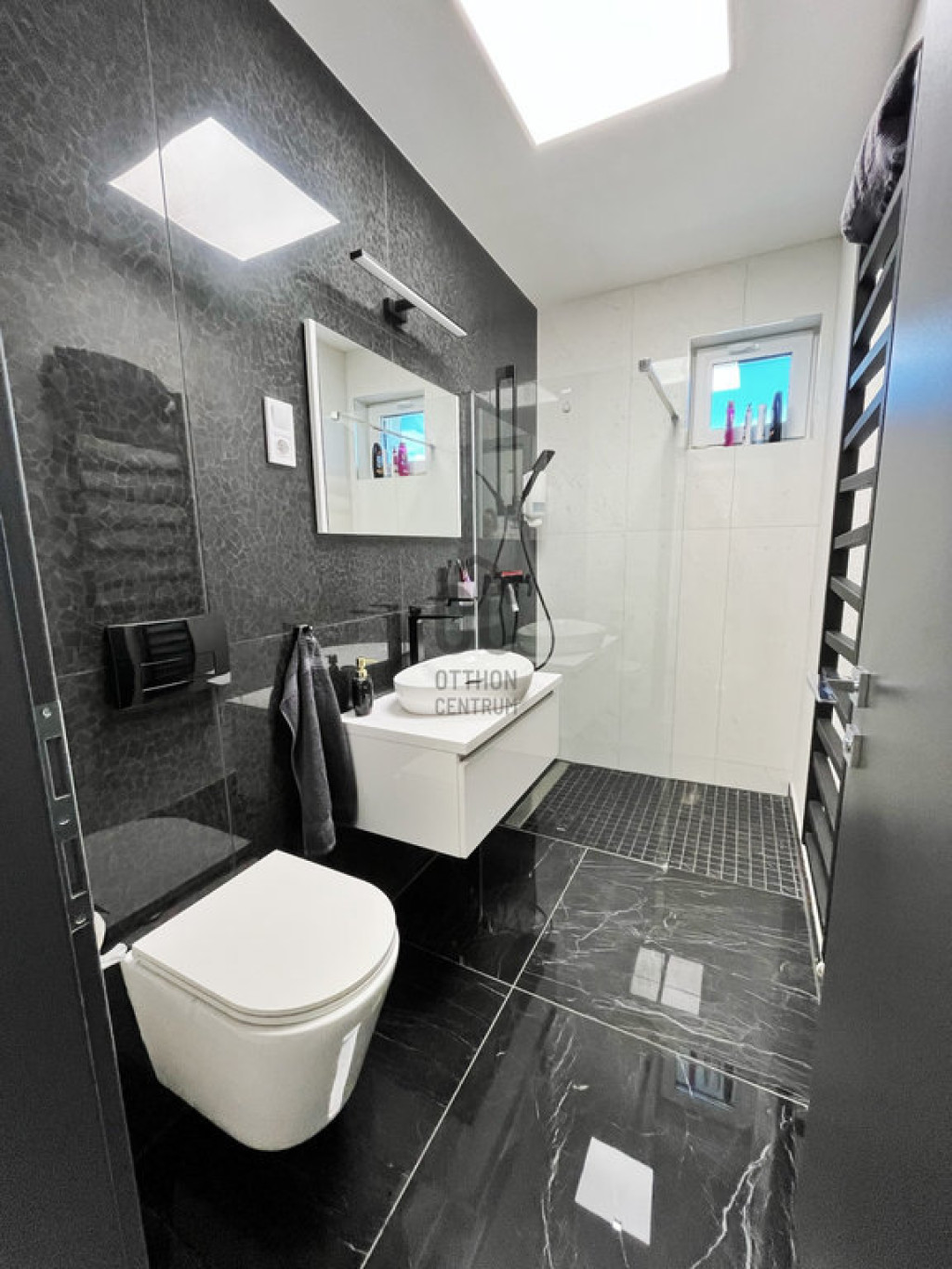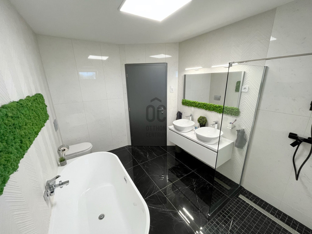 A fürdőszobákban mind a bútorokat, mind a szanitereket a Wellis prémium gyártó szállította.