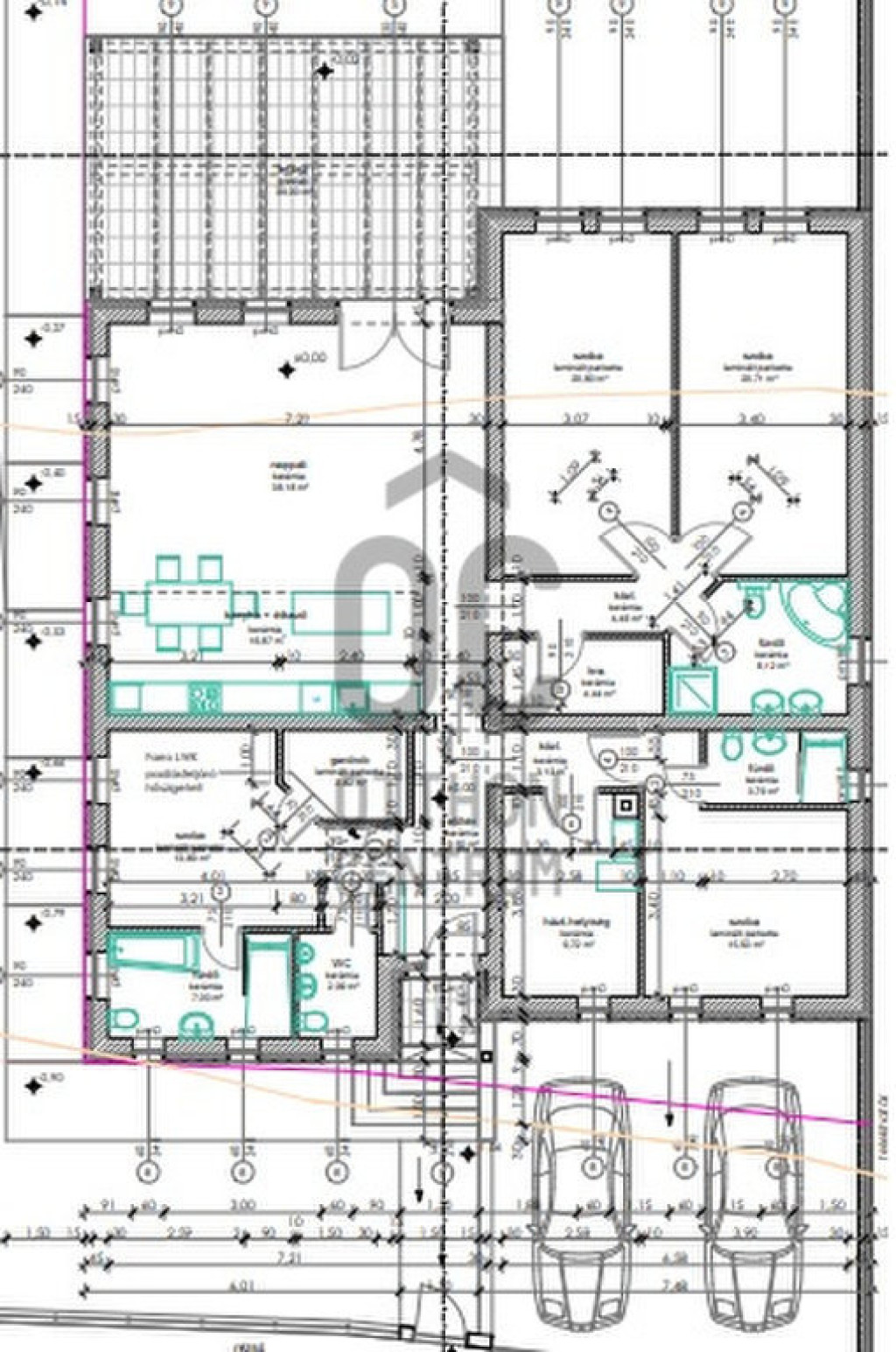 Az ingatlan bruttó alapterülete 225 négyzetméter, ehhez tartozik egy 40 négyzetméteres fedett és egy 50 négyzetméteres fedetlen terasz. Egy 30 négyzetméteres fedett és egy 60 négyzetméteres fedetlen autóbeálló. Valamint egy 30 négyzetméteres tároló.