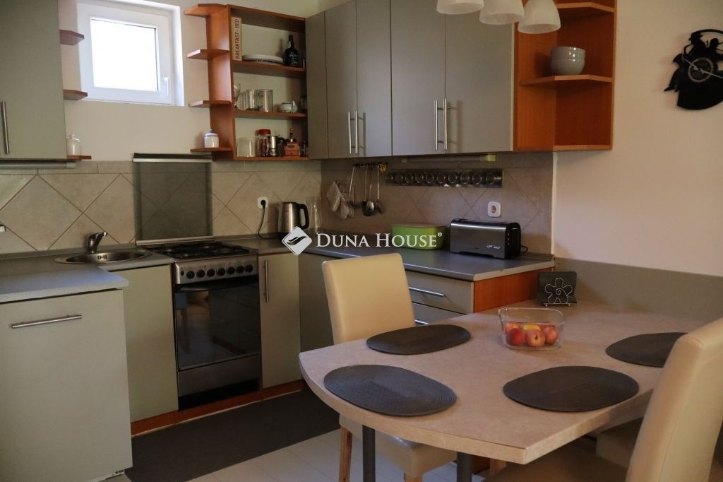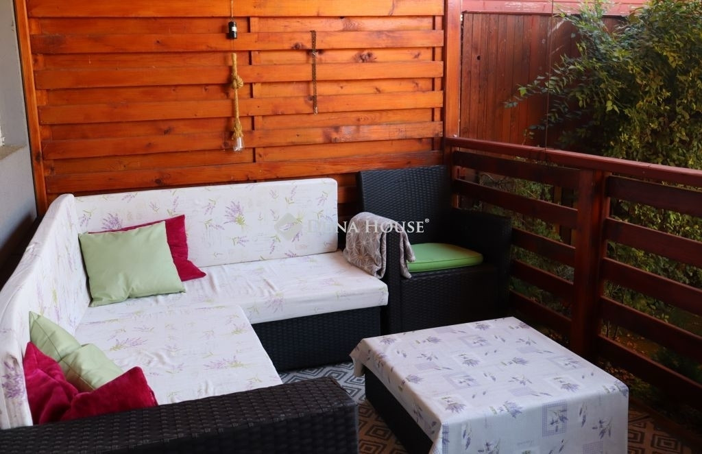 A 2005-ben épült lakóparkban található ez a kétszintes, újszerű, hangulatos lakás, amelyben az alsó szinten az amerikai konyhás nappali mellett fürdőszoba, valamint egy 12 m²-es fedett terasz került kialakításra kertkapcsolattal.