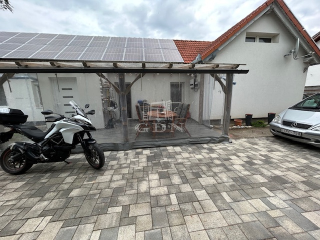 Zamárdi állandóan lakott részén, családi házas, csendes és nyugodt környezetben (Rétföldi utcában) eladó egy összesen 900 nm területű telken megépült, összközműves, önálló helyrajzi számon nyilvántartott lakóház. A 900-as telken két egymástól teljesen szeparált, minden tekintetben (közművek, hrsz.) elkülönült lakóház áll. Ez az épület a telek belső részén áll, egy közlekedő nyélen át közelíthető meg, amely miatt az utcáról nem látható, intim fekvésű az ingatlan. Az épület egy tehermentes, 85 nm + 24 nm terasz területű, egy lakószintes, tégla szerkezetű, (15cm) dryvit szigeteléssel ellátott, cserépfedésű családi ház. Egy nyugati tájolású, nagy méretű, fedett terasz felől jutunk be a lakótérbe, amely belépő, közlekedő, tágas, gépesített konyha-nappali, minőségi anyagokkal burkolt két fürdőszoba (egy kád-wc és egy zuhany-wc), valamint három hálószoba helyiségekből áll. Az épület fűtése egy 10,5 kilowattos napelem-rendszerrel támogatott, elektromos fali panelekkel történik, továbbá egy a nappaliban elhelyezett hűtő-fűtő klíma is segíti a megfelelő hőmérséklet kialakítását. Az áramellátás 3×32 amper. A használati melegvizet villanybojler biztosítja. A napelemes kiépítésnek köszönhetően, átlagos áramfelhasználás mellett a rendszer nullszaldós. A műanyag nyílászárók redőnyözöttek. A lakótér felett tágas padlástér található, amely hatalmas tárolókapacitást biztosít. A padlástér északi oldalán egy fedett, kis terasz került kialakításra, amelyről rálátás nyílik a Balatonra. Ez az épület 2024-ben került végső befejezésre. A házhoz 450 nm telekhányad tartozik, amely területen elhelyezésre került még egy 12 nm területű kerti tároló is. A parkolás több autó számára is kényelmesen megoldott a ház melletti, térkövezett és védett területen, amely egy kis, füves pihenőkerthez csatlakozik. További információkért hívjon vagy a megadott elérhetőségeken keressen! ...TOVÁBBI, TÖBBEZRES INGATLAN KÍNÁLAT: - GDN azonosító: 393123