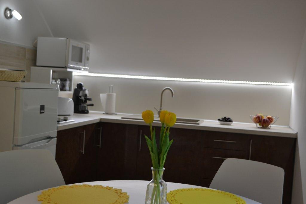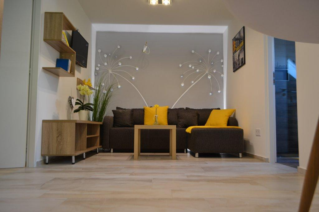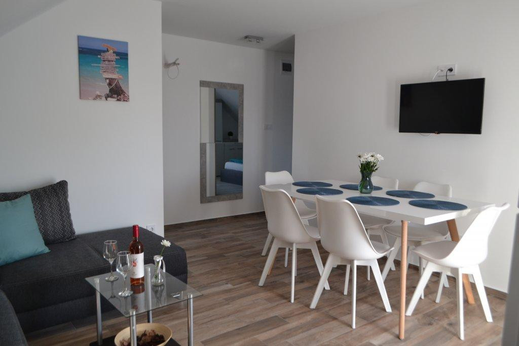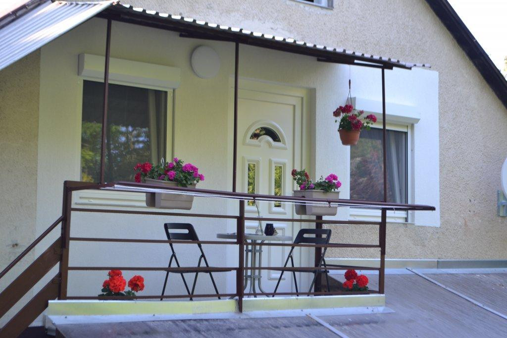 Egy földszinti és két tetőtéri önálló apartman felszerelt konyhával, saját fürdőszobával, terasszal, valamint kis erkélyekkel.
