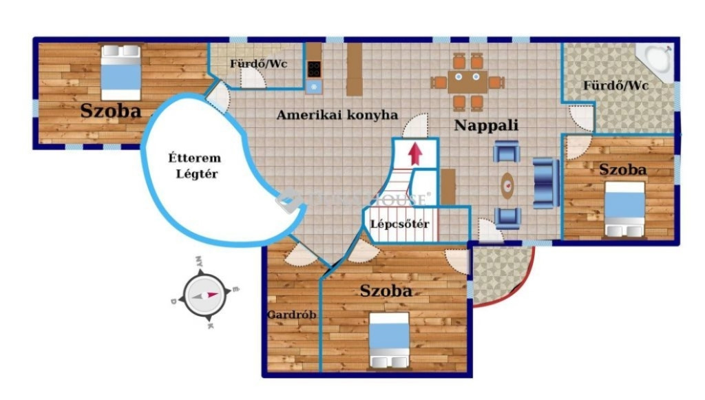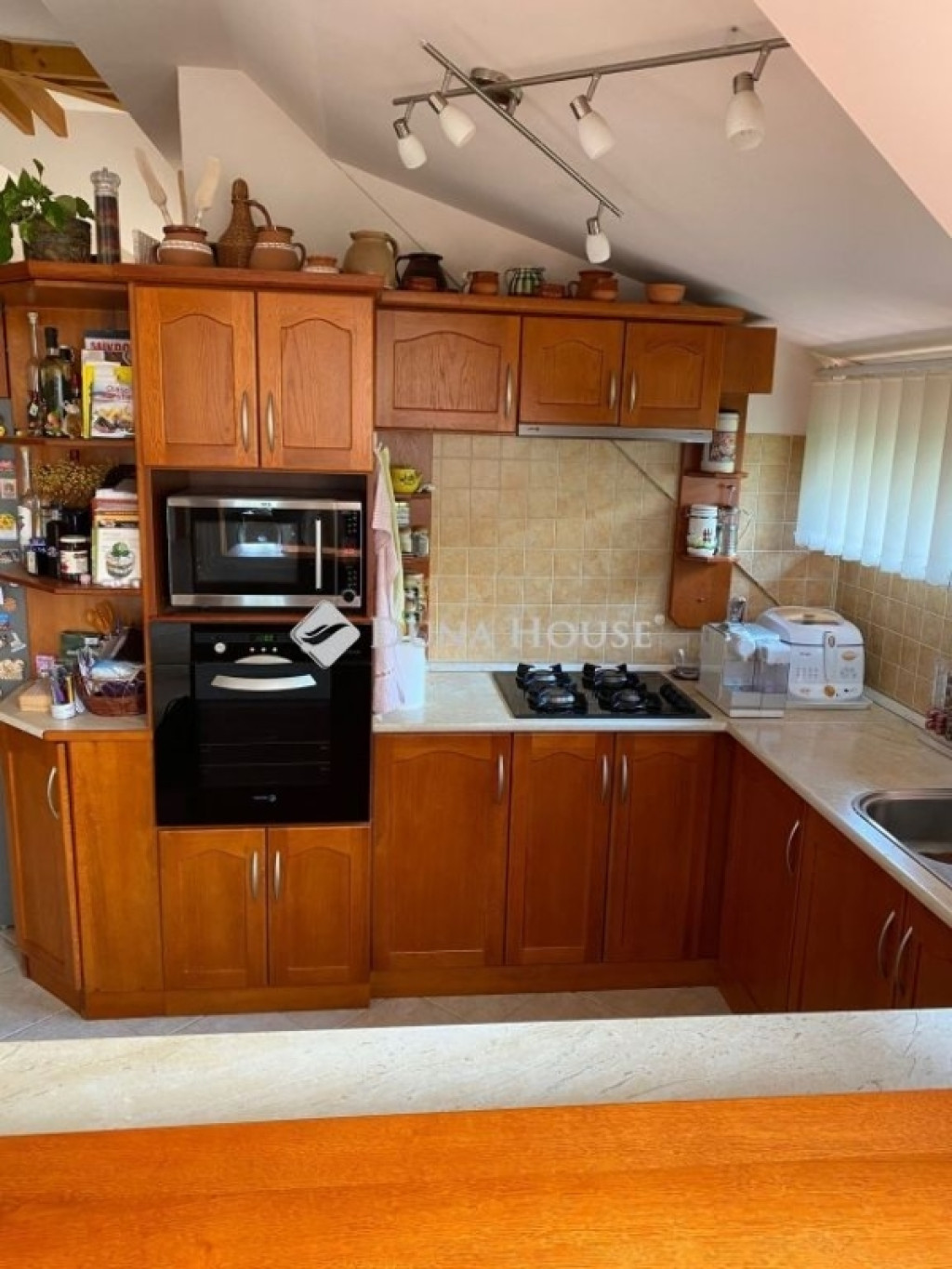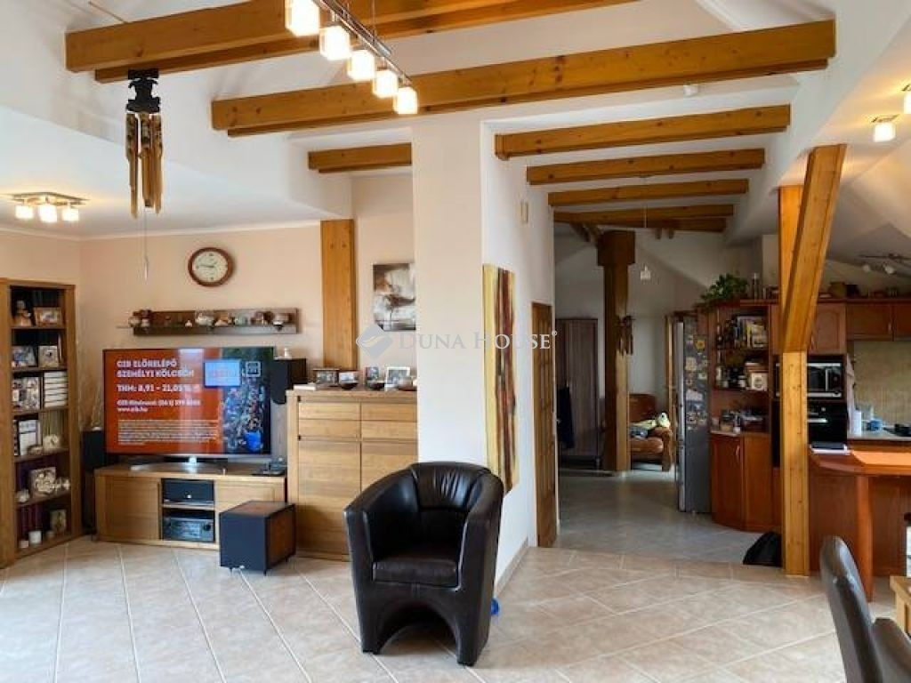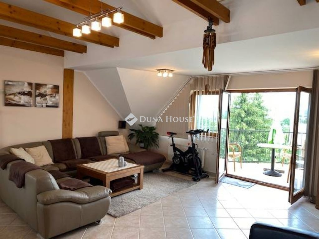 Az épület felső szintjén egy külön bejárattal rendelkező, minden szempontból igényes lakás található, melyben konyha-étkező-nappali, 3 szoba, 2 fürdőszoba és egy gardrób kapott helyet. Az ingatlan erkélyéről gyönyörű kilátás nyílik a Zirci Apátságra.