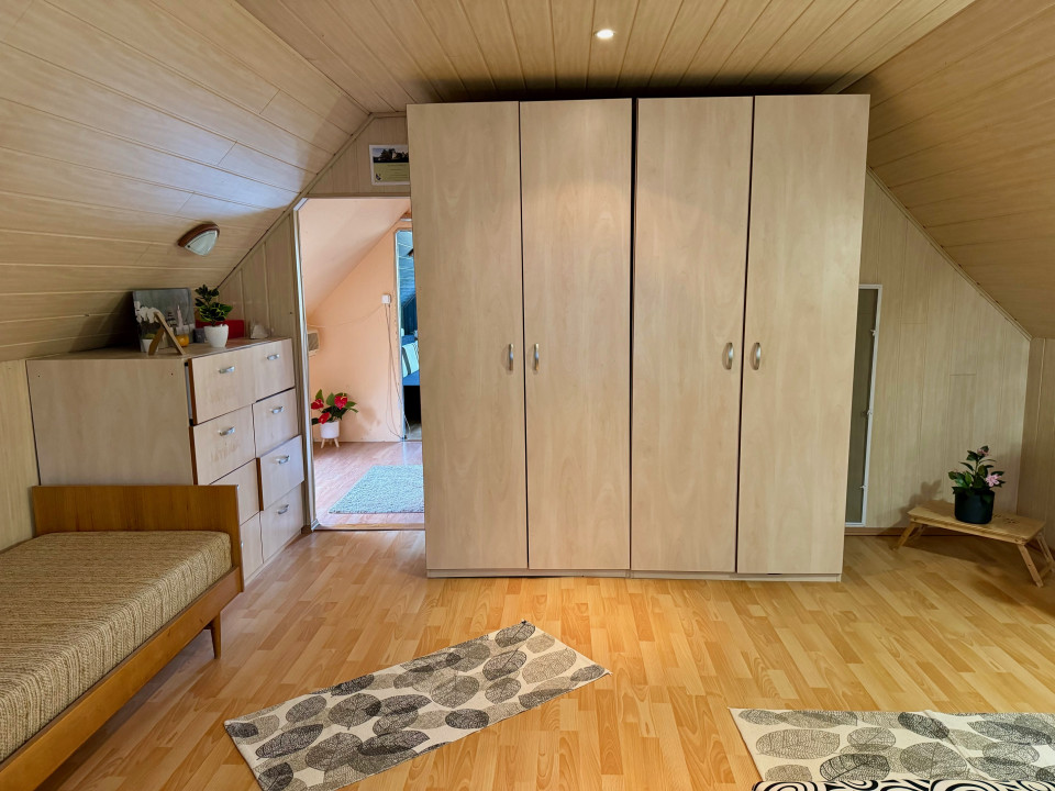 Emelet: 2 nagy méretű hálószoba, fürdőszoba WC-vel, kényelmes közlekedő.