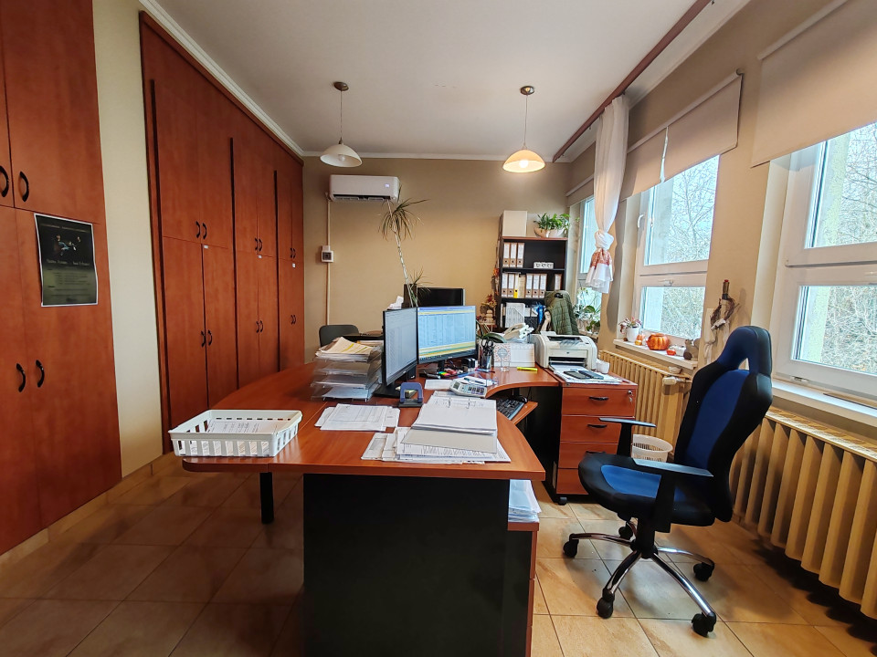 Tolna Vármegye negyedik legnagyobb népességű városában Bonyhádon megvételre kínálok egy jó állapotú három szintes irodaházat. Az ingatlan Bonyhád központjában, rendkívül frekventált környéken található. A három szint összesen 910 m2, az alagsort tárolásra használják, míg a földszinten és az emeleten különböző méretű irodák, szociálishelyiségek, fürdőszoba, két teakonyha, 60 m2- es tárgyaló, közösségi tér, kazánház, porta és lépcsőház lett kialakítva. Az ingatlan jó állapotú, 2012-ben történt egy nagyobb felújítás, de azóta is folyamatosan újítják, modernizálják és karbantartják. Három rétegű műanyagnyílászárókat és minőségi fa belső ajtókat építettek be, burkolatokat felújították, villanyhálózatot teljes egészében felújították (ipari áram), 50 KW-os napelem rendszert telepítettek (elegendő áramot termel az egész épület fogyasztásához), fűtésrendszert korszerűsítették (gáz kazán és elektromos kazán). A 2459 m2-es saját területen rendelkezésre áll egy nagy parkoló és három garázs is a gépjárművek részére.