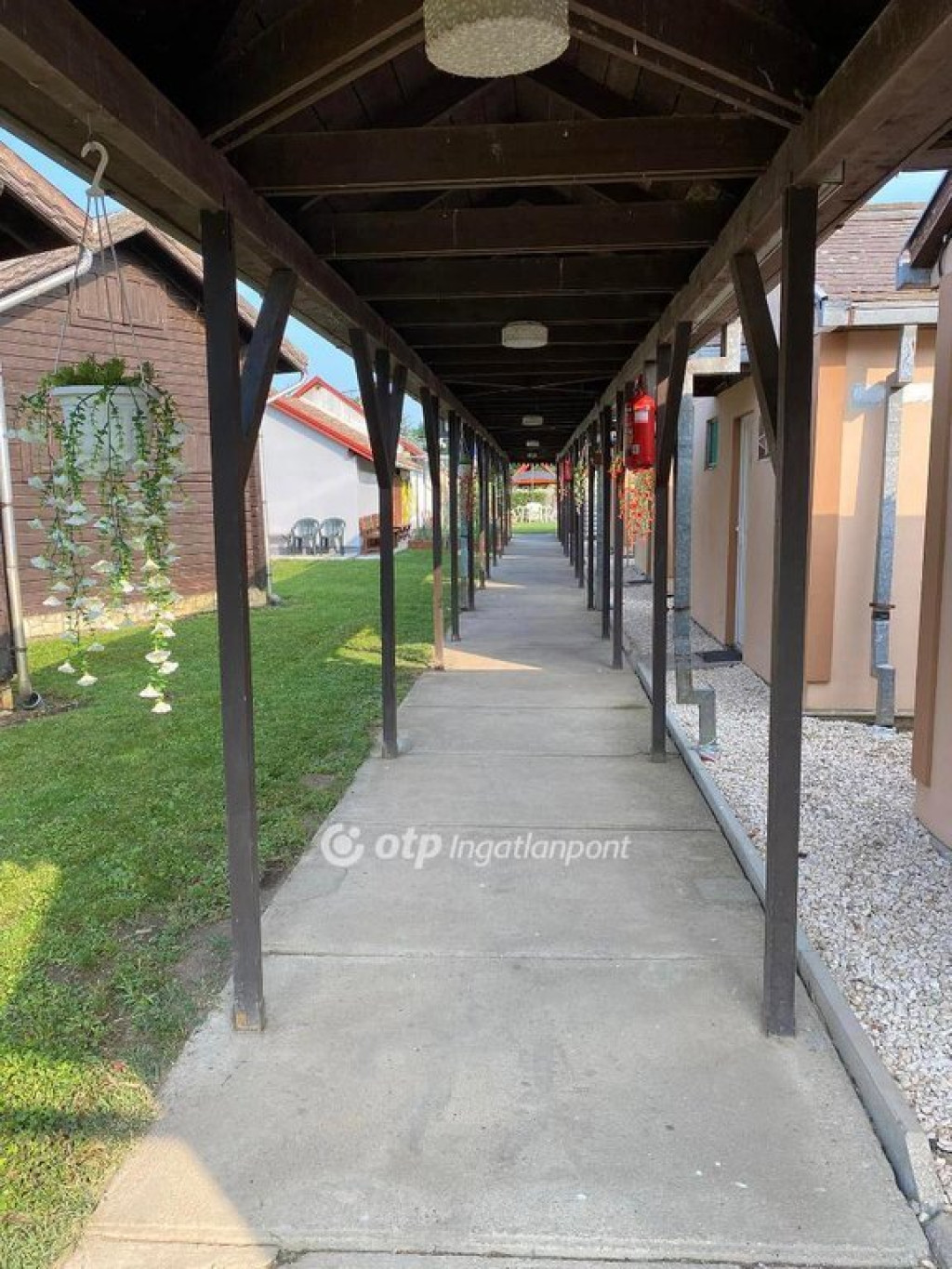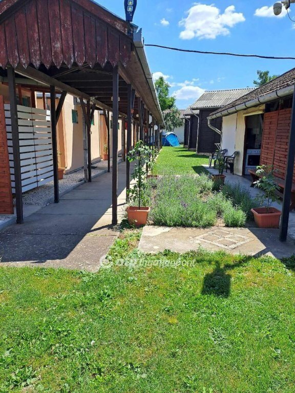 A hangulatot tovább gazdagítja egy régi parasztház, amely jelenleg raktárként és szervizként funkcionál, illetve egy melléképület, ahol további tárolási lehetőség biztosított. A parasztház teljes felújítást igényel vagy igény esetén bontandó. A kemping elektromos árammal (3×32A) és 8 kW-os saját napelemrendszerrel rendelkezik, a fűtés-hűtés minden egységben elektromosan, klímával megoldott. A pince praktikus tárolási lehetőséget kínál, az udvar pedig gondozott, részben térkövezett és könnyen karbantartható.
