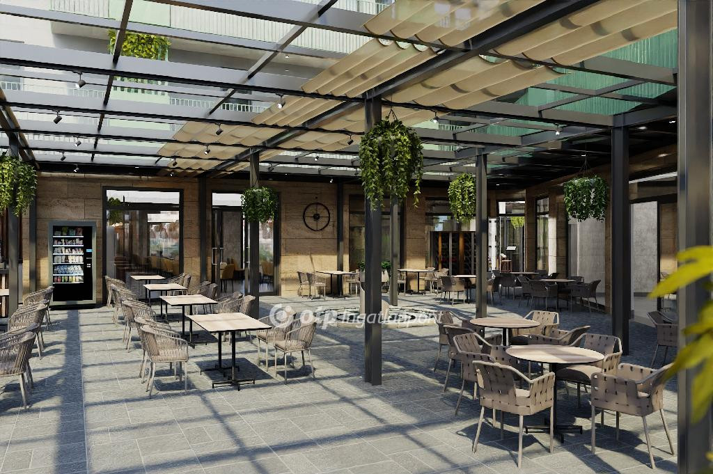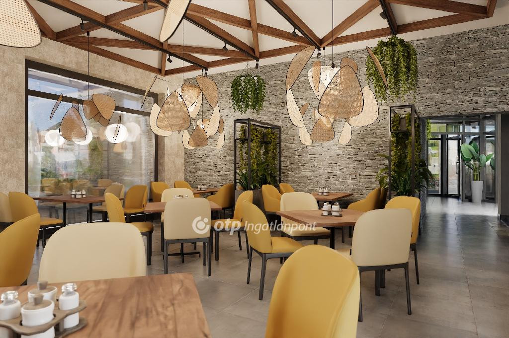 A földszinti részen magas minőségű étterem és cukrászda kap helyet, amelyek az épület elegáns arculatát és a város gasztronómiai kínálatát is tovább emelik.