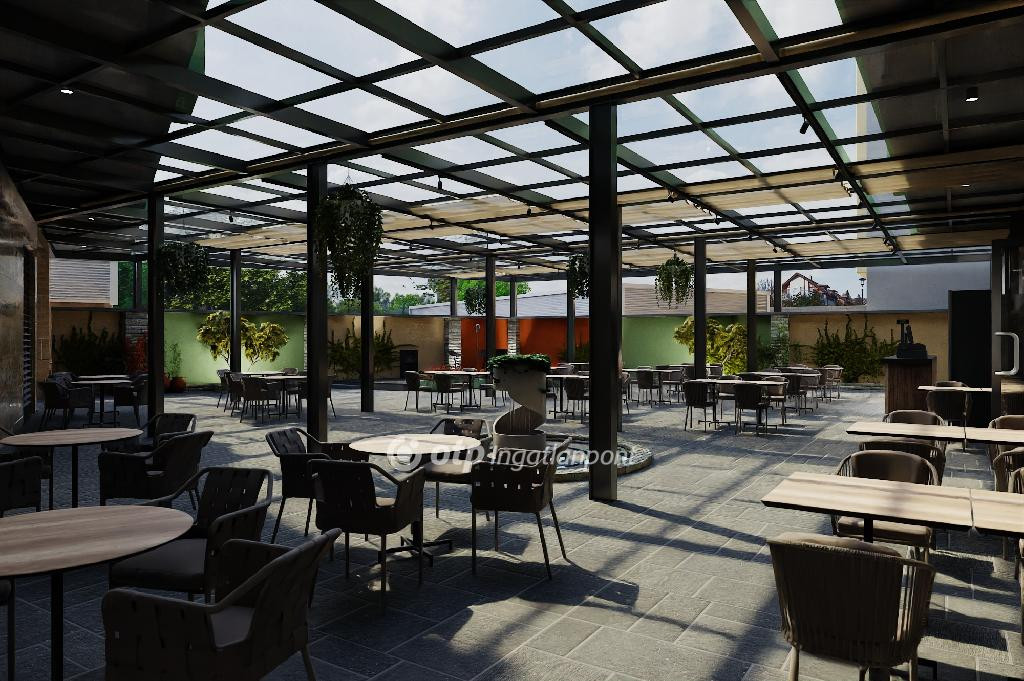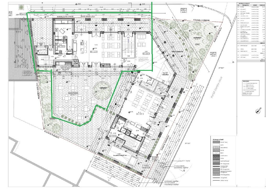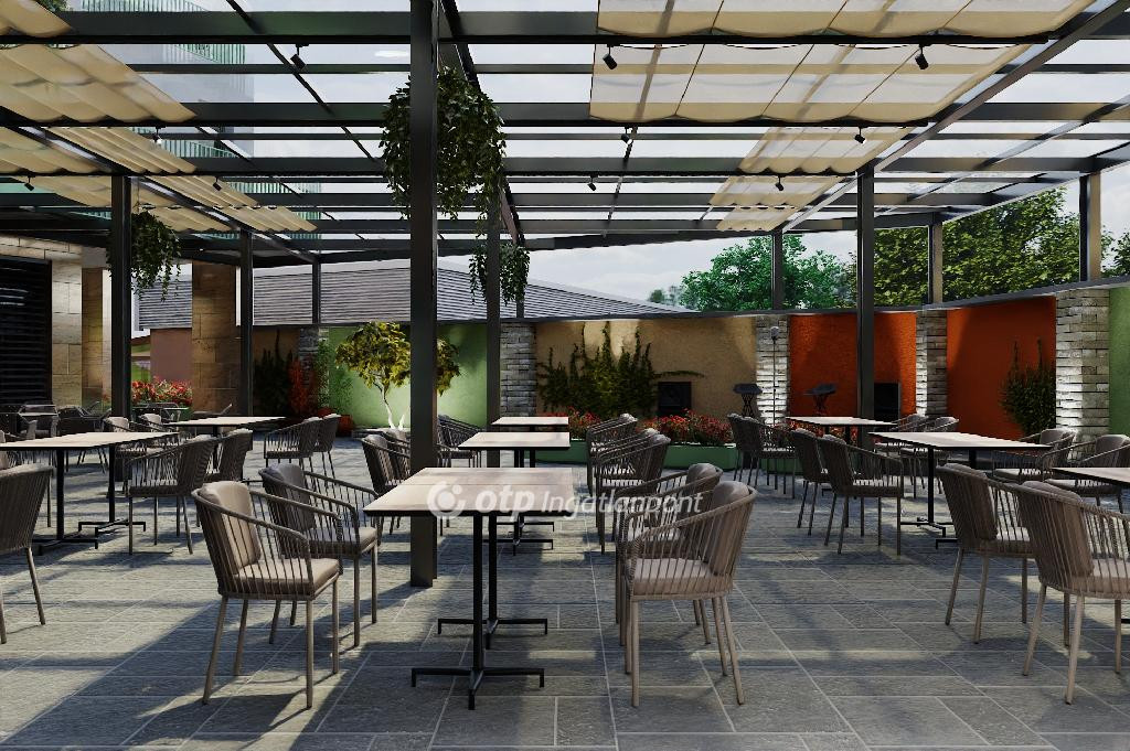 Vendéglátó egység Alapterülete : 90m2, Hozzá tartozó fedett árkád: 60m2, Konyha: 200m2, Közös terek,modók: 150m2