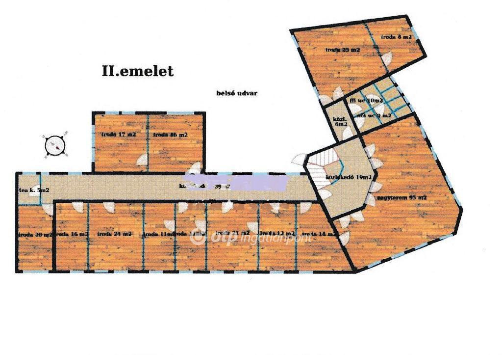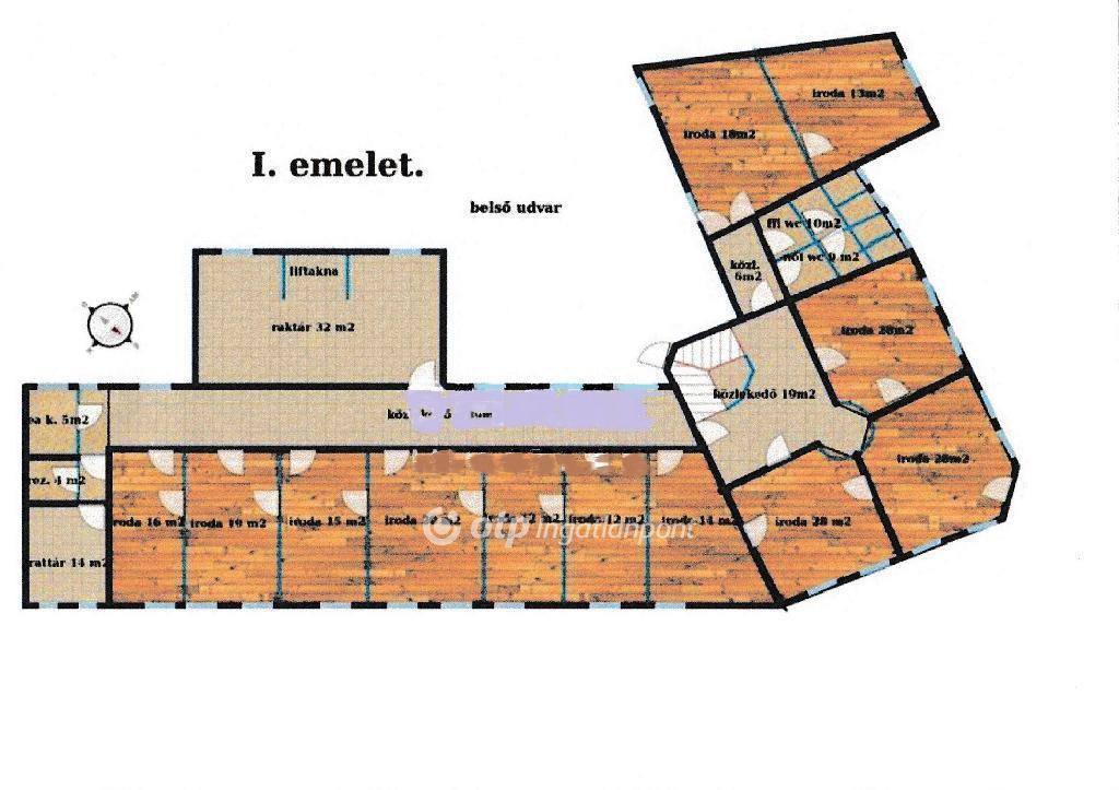 Békés vármegye, BÉKÉSCSABA BELVÁROSÁBAN, saroktelken épült 4 szintes (fsz. + 2 em. + tetőtér), összesen 1345 m2 beépített alapterületű IRODAHÁZ ELADÓ! Békéscsaba megyei jogú város, Békés vármegye gazdasági-földrajzi központja és székhelye. Budapesttől Kecskemétig az M5 autópályán, majd onnan a M44-es autóúton érhető el, kb. 209 km-re fekszik a fővárostól. A román határ (Gyulavarsánd) mintegy 20 km-re, keleti irányban húzódik. Az ingatlan két helyrajzi számon van nyilvántartva, összesen 1213 m2 telekterülettel: az irodaház, valamint az irodaház alatti átjárón a belső udvar felöl, illetve külön utcai bejáraton keresztül is megközelíthető üres terület. A két ingatlan együttesen van körbekerítve. Az irodaházat a modern kialakítás és a tágas elrendezés jellemzi: letisztult, világos terek, korszerű burkolatok, több különálló irodahelyiség, nyitott terek, tárgyalók, közösségi terek! Az 1991-ben épült irodaház tervezője, ezért a munkájáért Ybl Díjat kapott! Az épületben összesen 30 db klimatizált irodahelyiség található, 12-34 m2 közötti alapterülettel, a 2. emeleten egy 95 m2-es nagyterem került kialakításra, szintenként női-ffi vizesblokkok találhatóak, melyeket 2021-ben újítottak fel. További helyiségek: raktárak, teakonyhák, irattárak, közlekedők, lépcsőház, kazánház, garázs. A fűtés központi gázkazánról (4db) működik, radiátoros illetve padlón keresztüli hő leadással. Az irodaház központi elhelyezkedése miatt könnyen megközelíthető. Saját parkolóhelyek állnak rendelkezésre, illetve a közelben további parkolóhelyek is elérhetőek. Az ingatlan ideális választás olyan call center vagy shared service center típusú vállalatok magyarországi telephelyének, amik modern infrastruktúrát é stratégiai elhelyezkedést keresnek, de oktatási intézmény, alapítványi központ, pénzügyi, egészségügyi szolgáltatás céljára is megfelelő lehet. Amennyiben érdeklődését felkeltettem, az ingatlan előre egyeztetett időpontban megtekinthető!--------------------Az OTP Bankcsoport teljes körű ügyintézéssel áll az eladók és a vevők rendelkezésére! A kínálatunkból választott ingatlan finanszírozásához kedvezményes hitel- és lízingkonstrukciókat, kínálunk. Kérje személyre szabott, díjmentes ajánlatunkat! Az adásvételi szerződés megkötéséhez igény szerint megbízható ügyvédi közreműködést biztosítunk, és segítséget nyújtunk az adásvételhez kapcsolódó ügyek intézéséhez.
